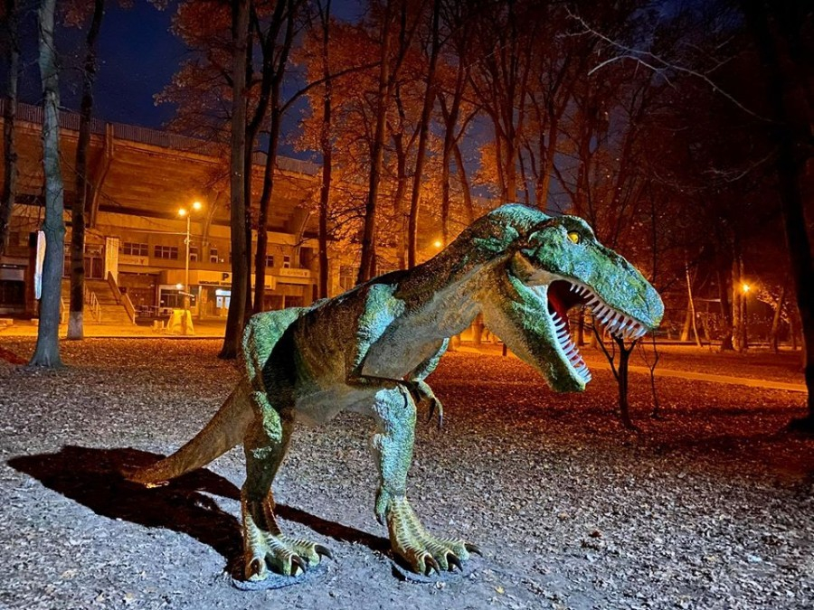 До слова, кілька тижнів тому студенти Медичного університету понищили скульптуру — відламали динозавру лапу.