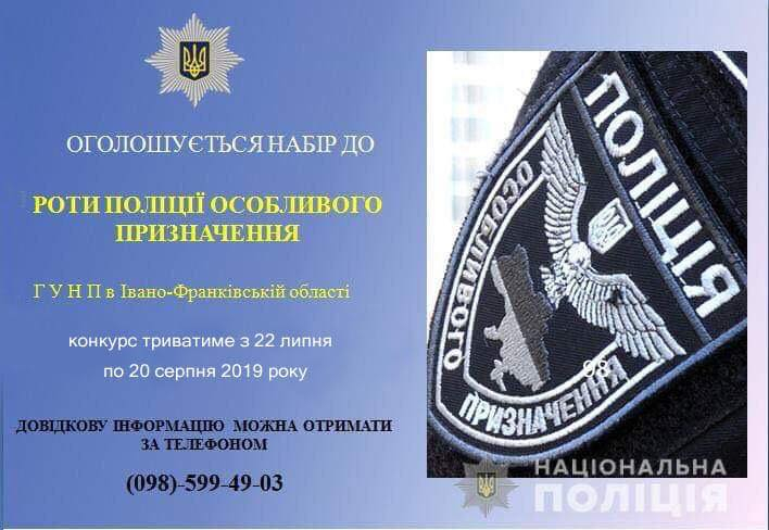 З 22 липня стартує кадровий набір у спецпідрозділ - роту поліції особливого призначення Головного управління Національної поліції в Івано-Франківській області.