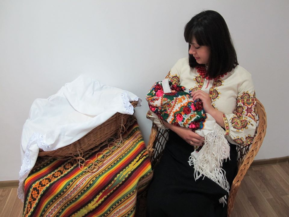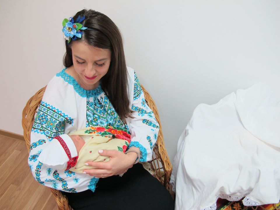 На світлинах зображені матері, одягнені в українські строї, з немовлятами, а також – жінки при надії.