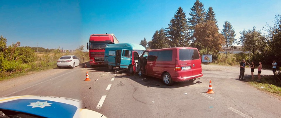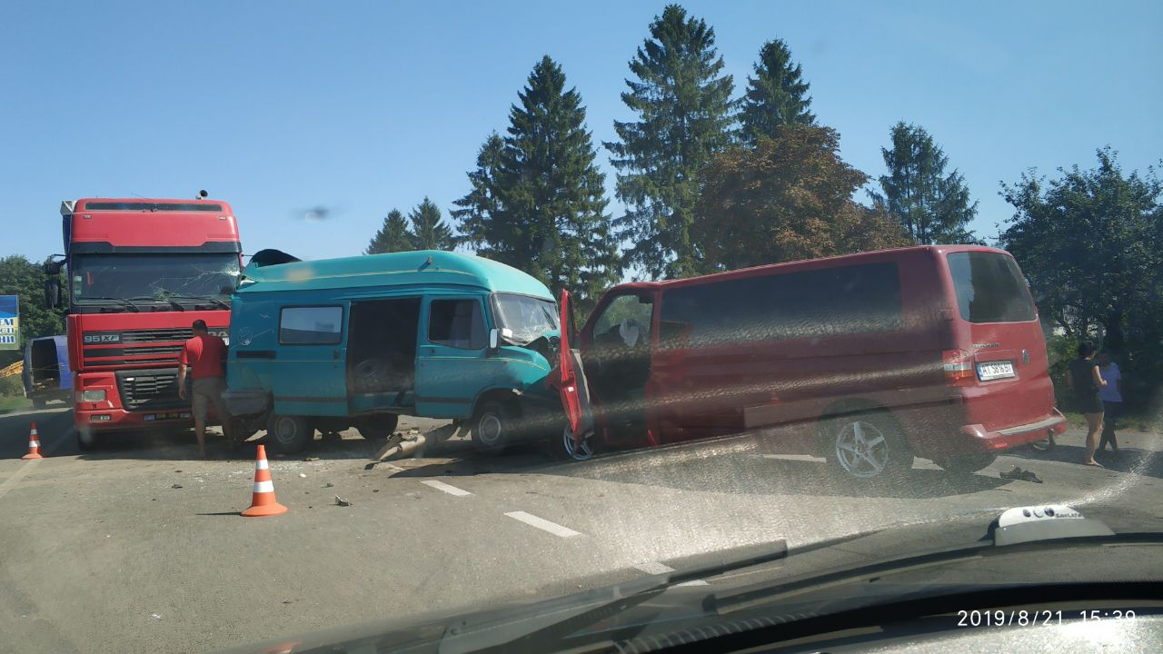 Як розповіли Фіртці в управлінні Нацполіції області, автомобіль Volkswagen T5 рухався у сторону Чернівців. В нього врізався автомобіль LDV Convoy, в який в'їхав тягач DAF.