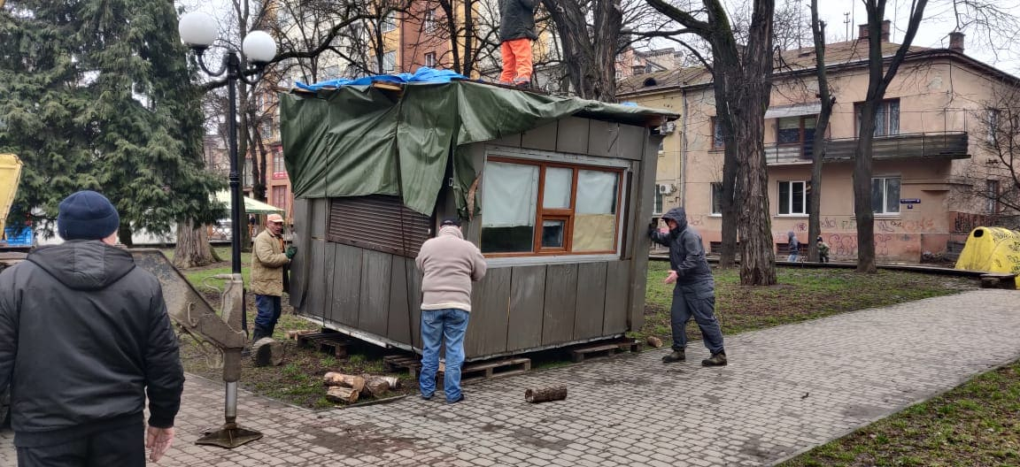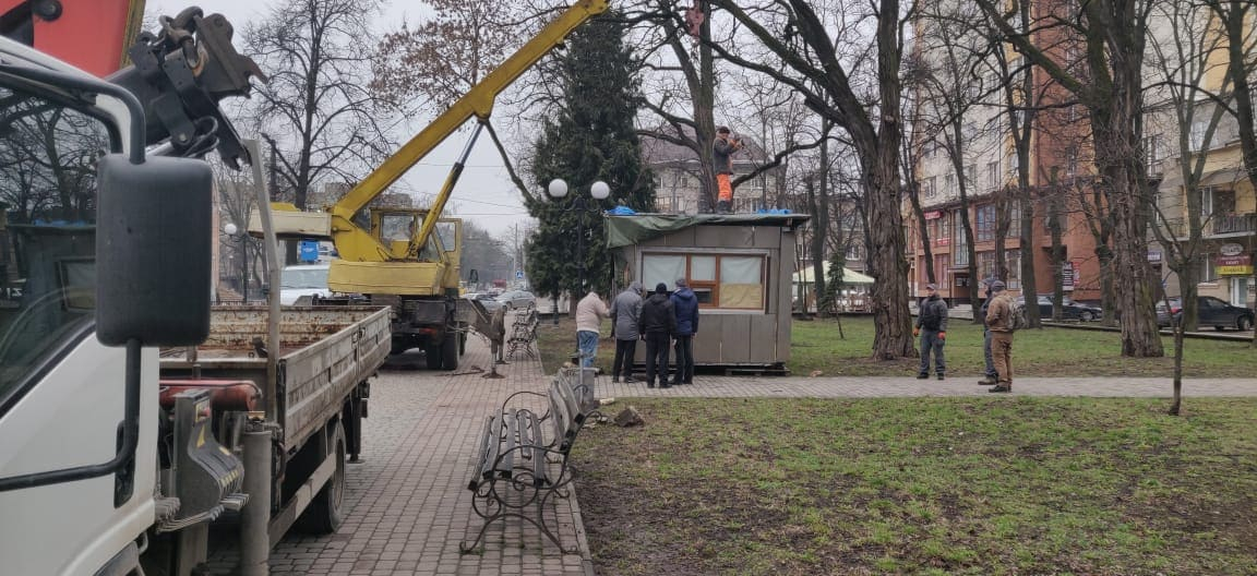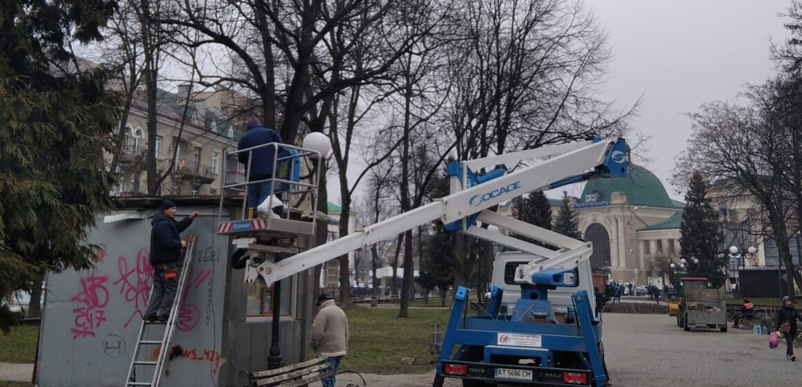 У Привокзальному сквері комунальники встановлюють “спостережний штаб Марцінківа” (ФОТОФАКТ)