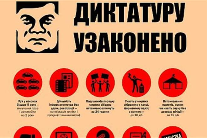 16 січня 2014 р. на той момент провладні фракції ухвалили "в ручному режимі" низку законів, які обмежували конституційні права і свободи громадян. Зокрема, ВР посилила обмеження на проведення масових акцій, амністувала співробітників спецпідрозділу МВС "Беркут", які били мирних демонстрантів, ввела відповідальність за наклеп і жорстко регламентувала діяльність ЗМІ. 28 лютого, після втечі Віктора Януковича і розстрілу на Інститутській, Верховна Рада скасувала ці закони.