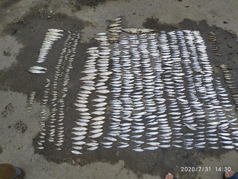 На трьох ділянках виявили та вилучили відбір риби у снулому стані, а саме: верховодка – 500 екз., гірчак – 175 екз., плітка 63 екз., пічкур звичайний – 33 екз., бичок-піщаник – 14 екз. (всього 785 екз. загальною вагою 7,6 кг). Водні біоресурси передали для дослідження у ветлабораторію Держпродспоживслужби, аби встановити причини загибелі.