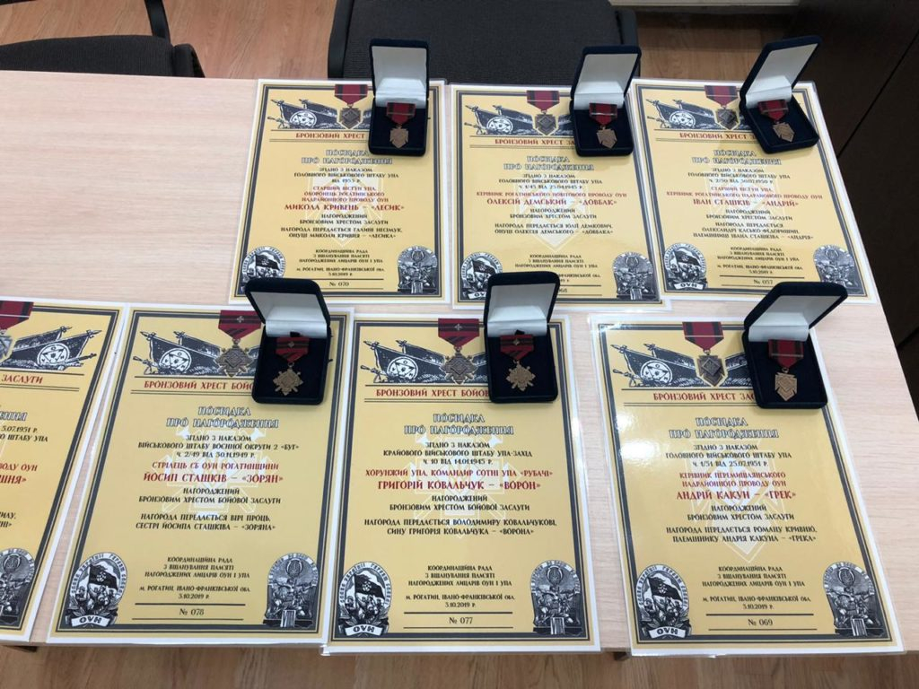 «Найвищі нагороди Української повстанської армії – Хрести Бойової Заслуги та Хрести Заслуги – вперше в Україні вручили нащадкам тих, хто понад 60-70 років тому був удостоєний цих відзнак, але через смерть так і не отримав їх. Поки що відомо про 1102 таких Лицарів (за їхніми псевдо), з них не ідентифіковано 660», - йдеться у повідомленні.