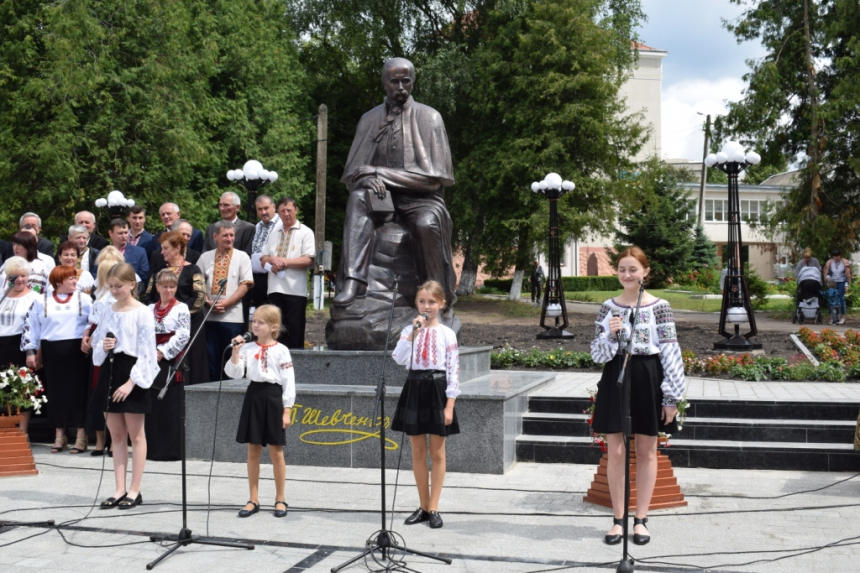 На площу перед державним аграрним коледжем, де спорудили монумент Кобзарю, прийшли сотні людей, серед них – громадські активісти, учасники бойових дій, містяни, діти, інформує Фіртка з посиланням на ІФ ОДА.