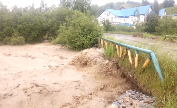 Сьогодні сильна злива у Биткові на Надвірнянщині підняла рівень місцевої річки Розсіч на кілька метрів.