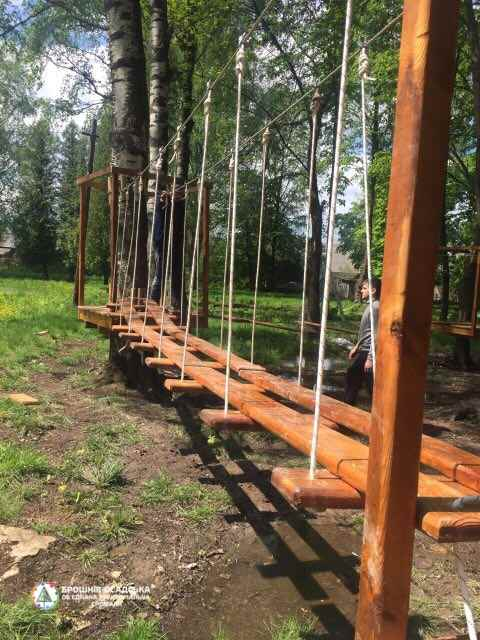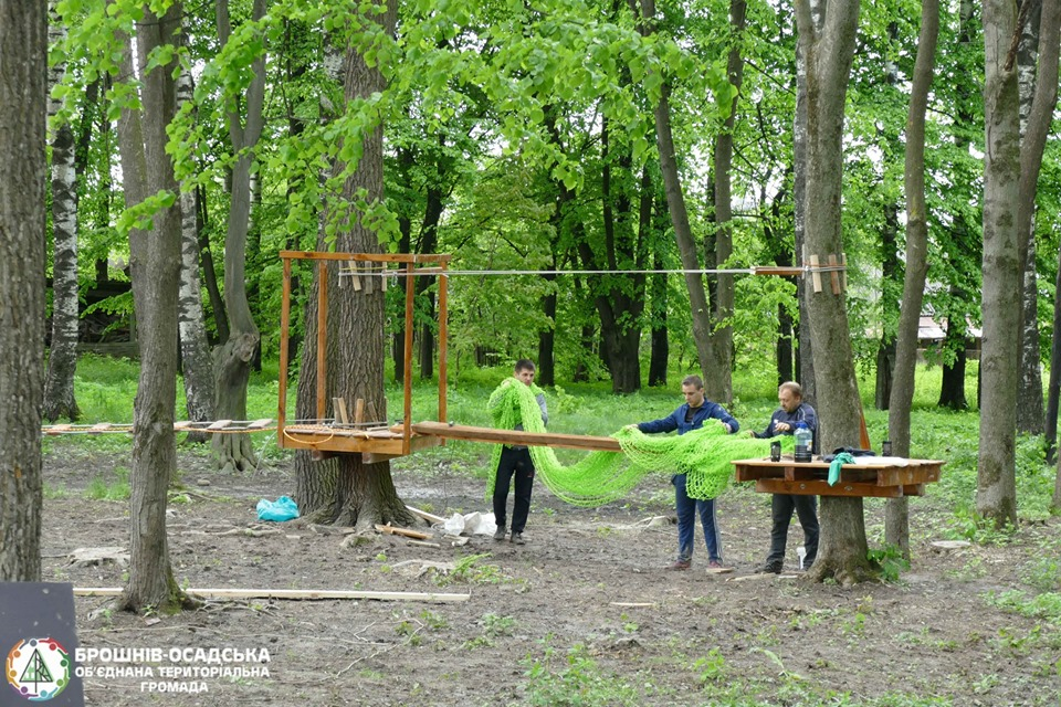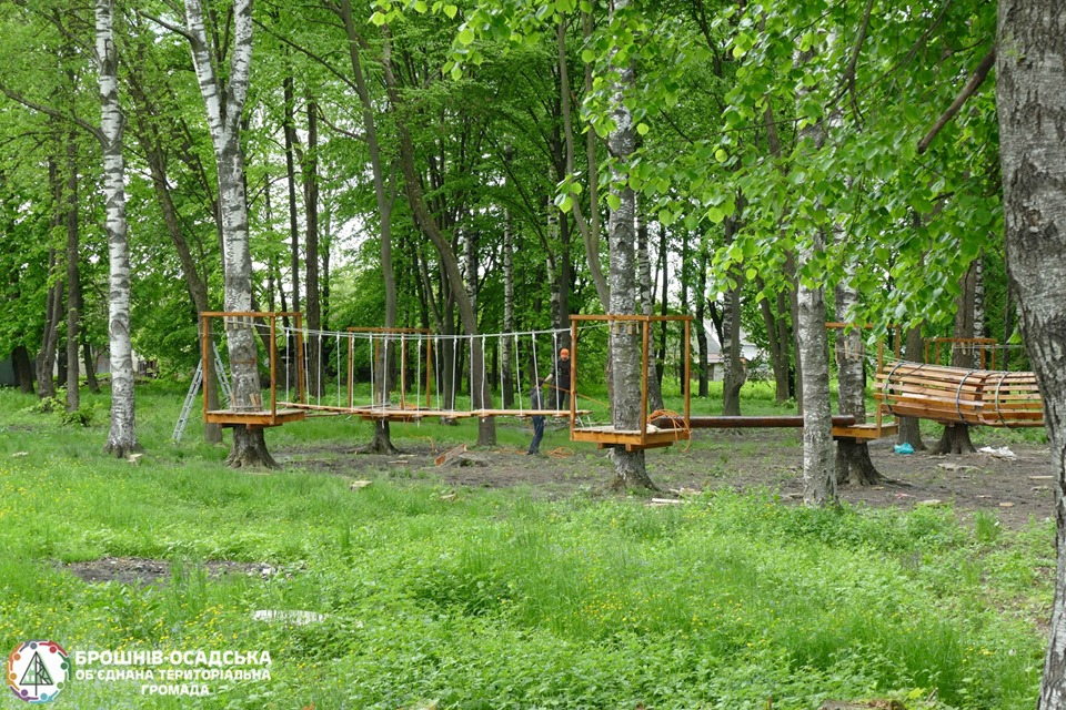 І всього за два дні у парку з’явилися цікаві конструкції: це мостики, колода, гойдалки, зиґзаґи та інші оригінальні елементи, де діти зможуть позмагатися на спритність, спробувати свої фізичні можливості та потренуватися.