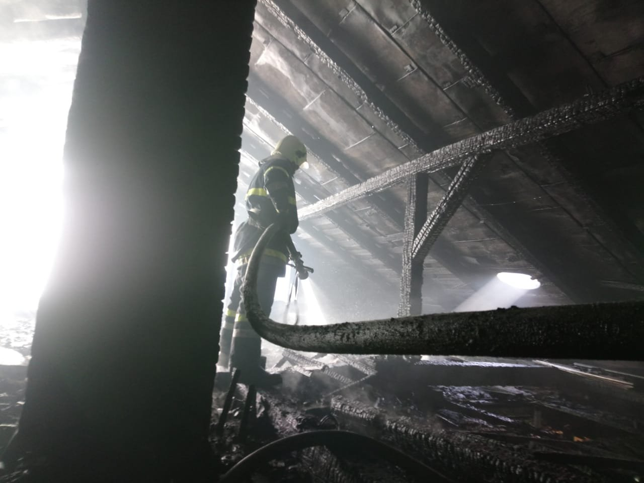 Через сильне задимлення вогнеборці працювали в апаратах захисту органів зору та дихання. Гасіння пожежі ускладнювалося високим пожежним навантаженням.