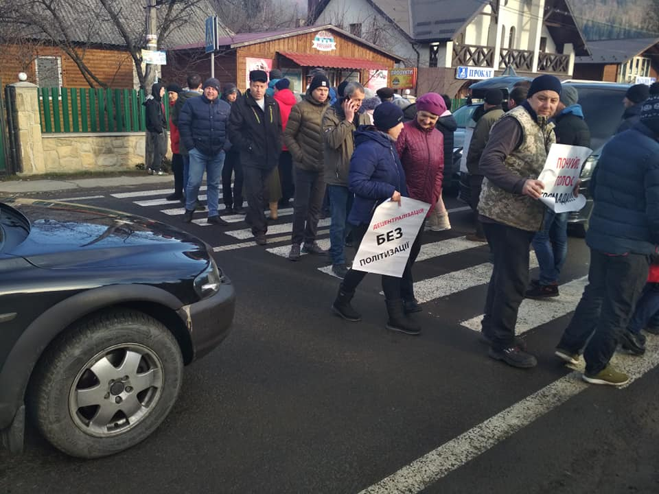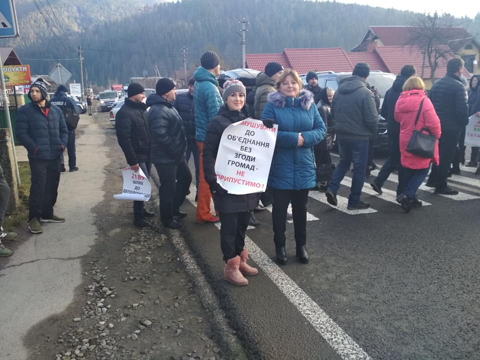 Люди протестували проти об’єднання з Яремчанською ОТГ. Люди хочуть створити власну об’єднану територіальну громаду. Перекривати дорогу почали о 10 годині. Впродовж 10 хвилин протестувальники пропускали автомобілі, потім на 30 хвилин блокували рух транспорту.