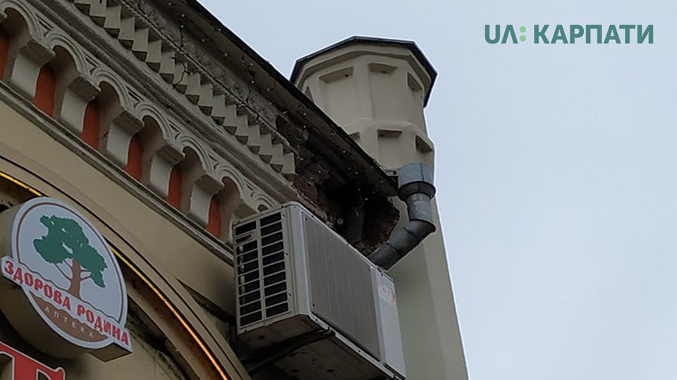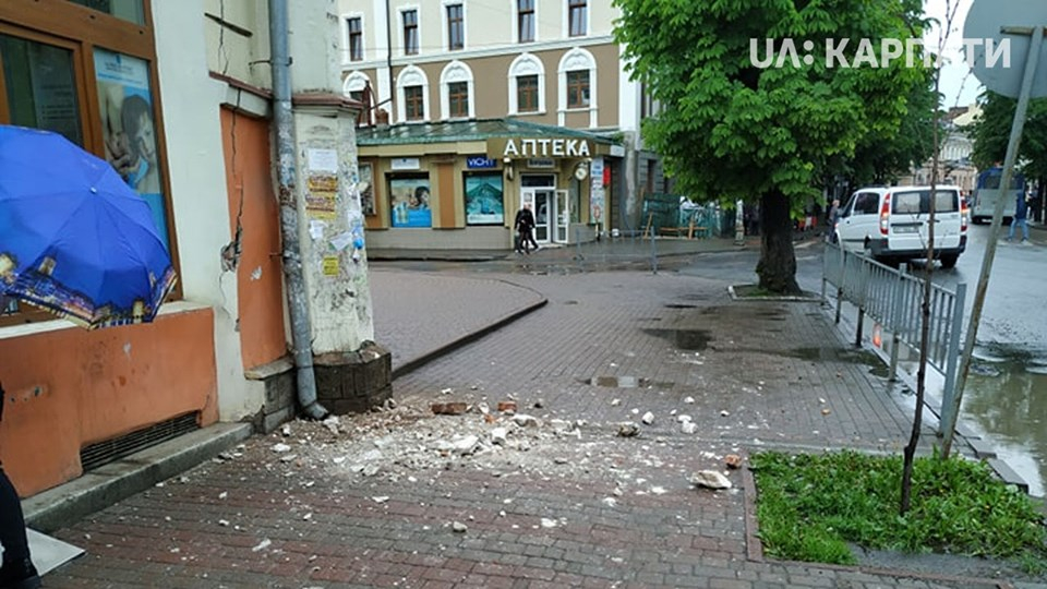 Сьогодні, 21 травня, у центрі Івано-Франківська відпала частина карнизу будинку, що знаходиться на вулиці Січових Стрільців, 24.