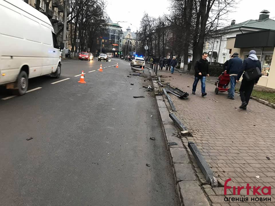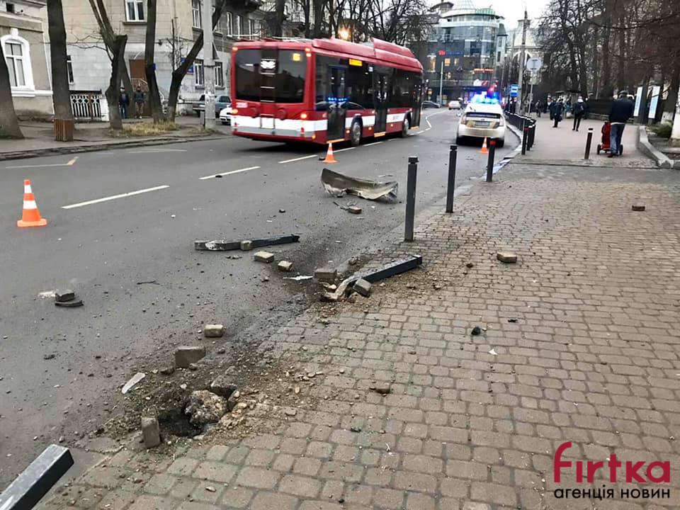 У центрі Франківська водій наїхав на пішохода та зніс антипаркувальні стовпці
