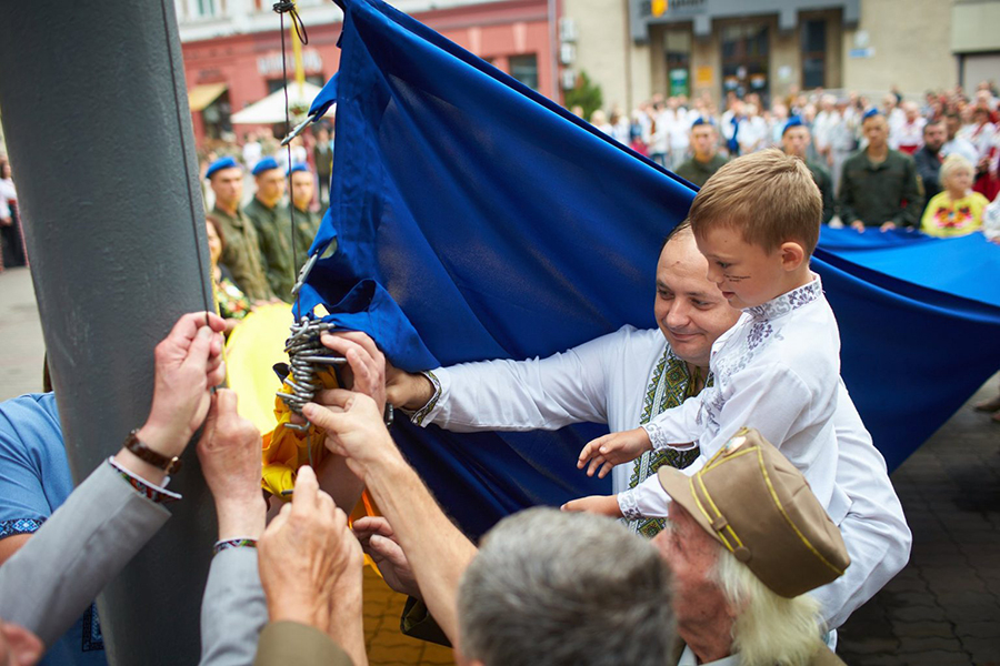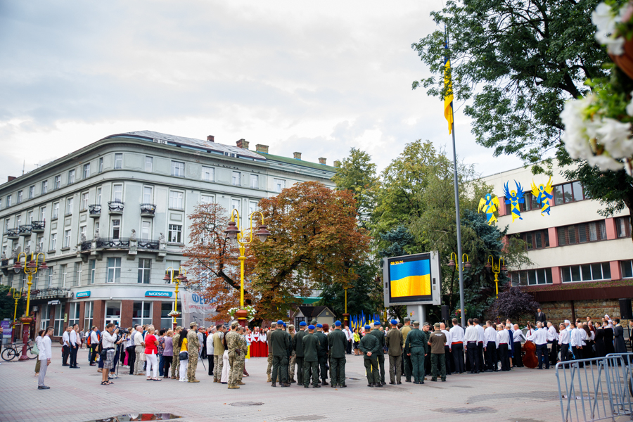 В Івано-Франківську міський голова, гвардійці та жителі міста, урочисто підняли синьо-жовтий стяг.