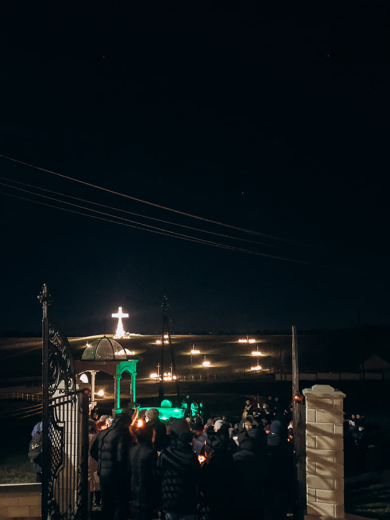 Вірні, спільно зі священниками, пройшлися шляхом на гору, зупиняючись на стаціях, щоби роздумувати над страстями нашого Господа. Цей шлях вони долали із запаленими свічками, які додавали молитві особливого настрою.