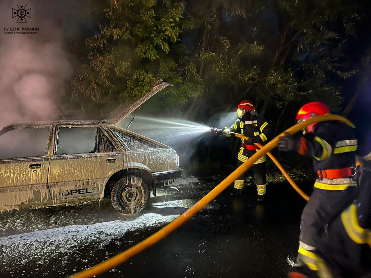 Прибувши до місця виклику, вогнеборці ліквідували пожежу моторного відсіку транспортного засобу.