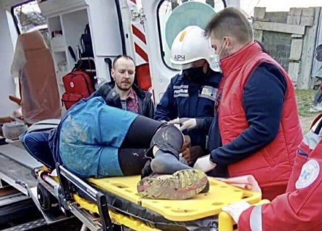 Рятувальники надали допомогу по перенесенню травмованого чоловіка до карети швидкої медичної допомоги.