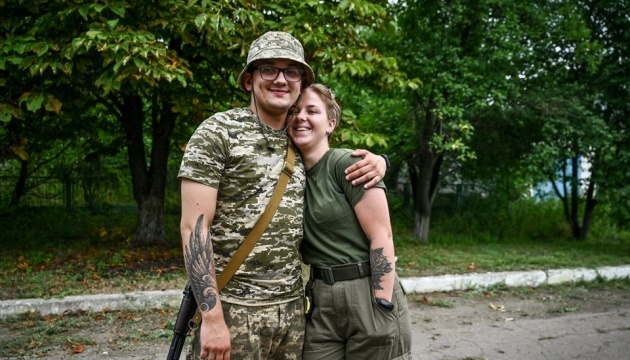 “Нам по 19 років. Ми родом з Івано-Франківська. Вчились у школі разом з першого класу, рік тому одружились і зараз ми в одній бригаді, але на різних службах. У нас є база даних нашої бригади, і ми наймолодше подружжя”, - розповідає військова Катерина Гуслякова.