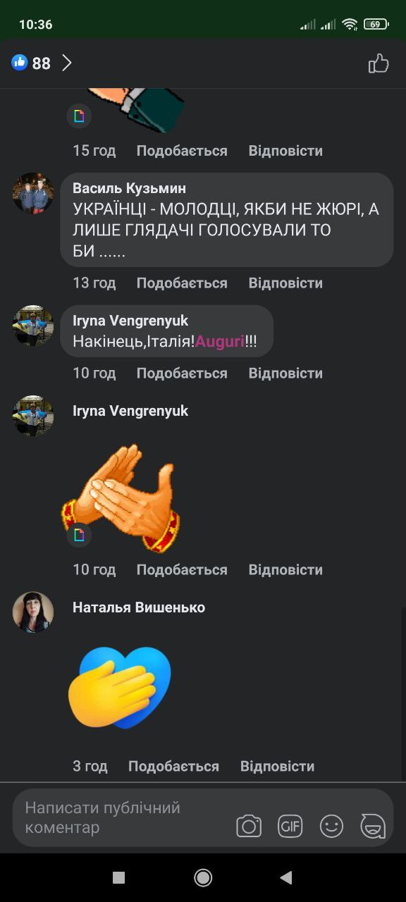 Варто додати, українське національне журі віддало найвищий бал (12) саме гурту від Італії.