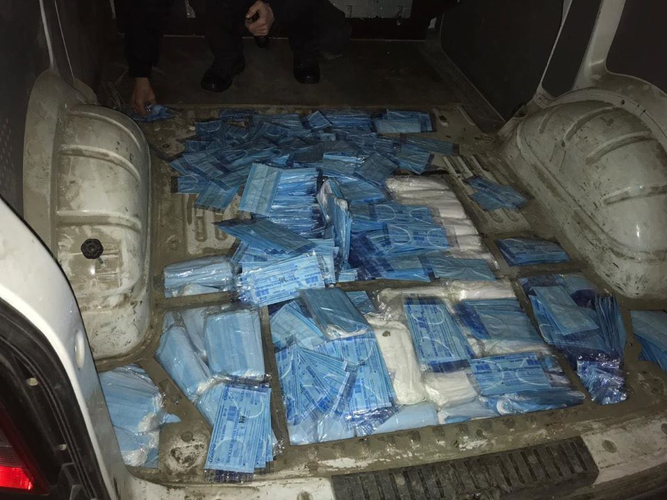 У ході подальшої перевірки виявили два спеціально виготовлені тайники, а саме подвійне днище багажного відділення автомобіля у якому знаходились марлеві та одноразові медичні маски у загальній кількості 10 653 штуки.