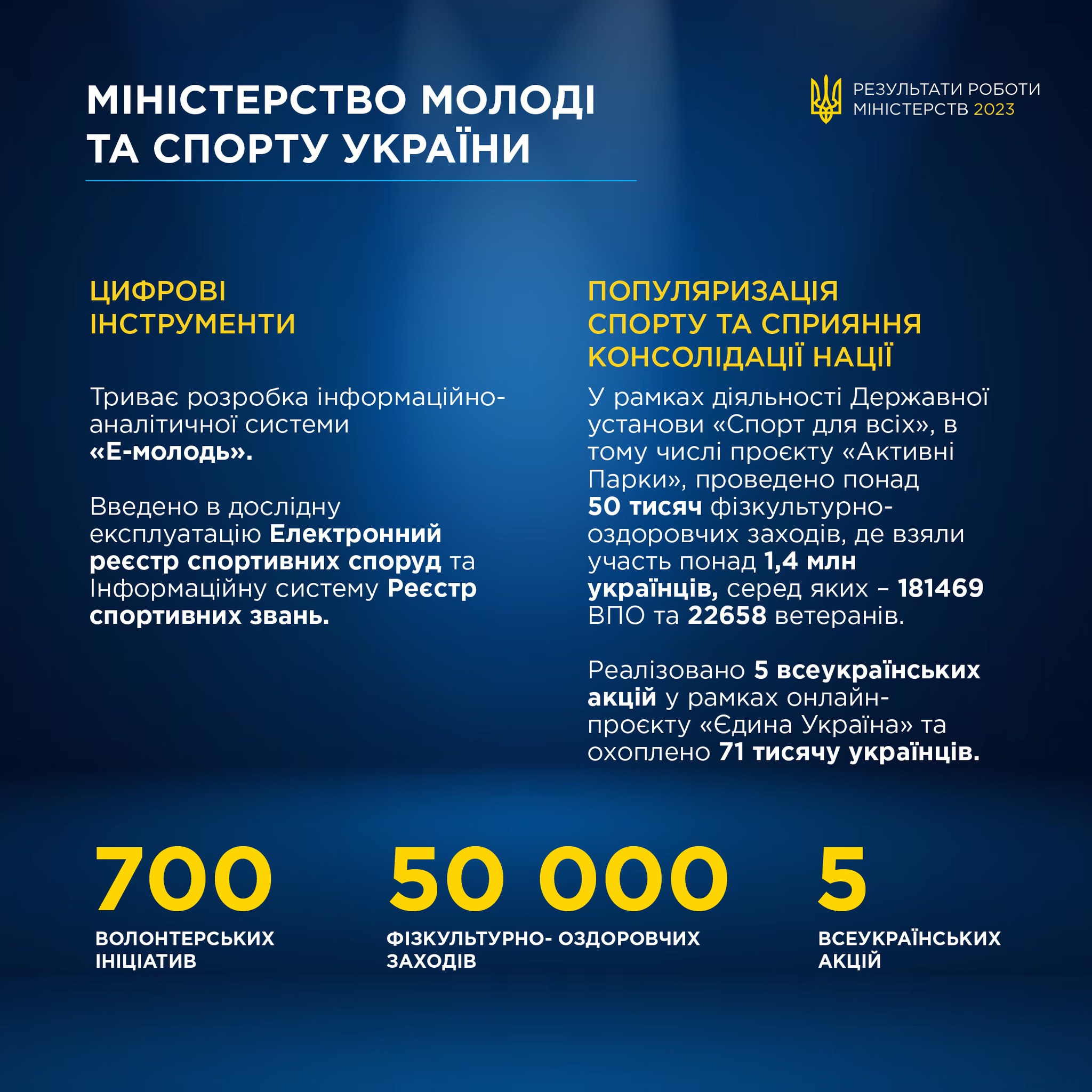 Яким був рік роботи Міністерства молоді та спорту України – дивіться в інфографіці.