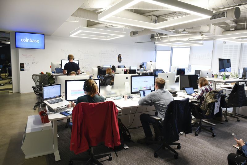 Співробітники працюють в офісі Coinbase у Сан-Франциско. Фотограф: Майкл Шорт / Блумберг