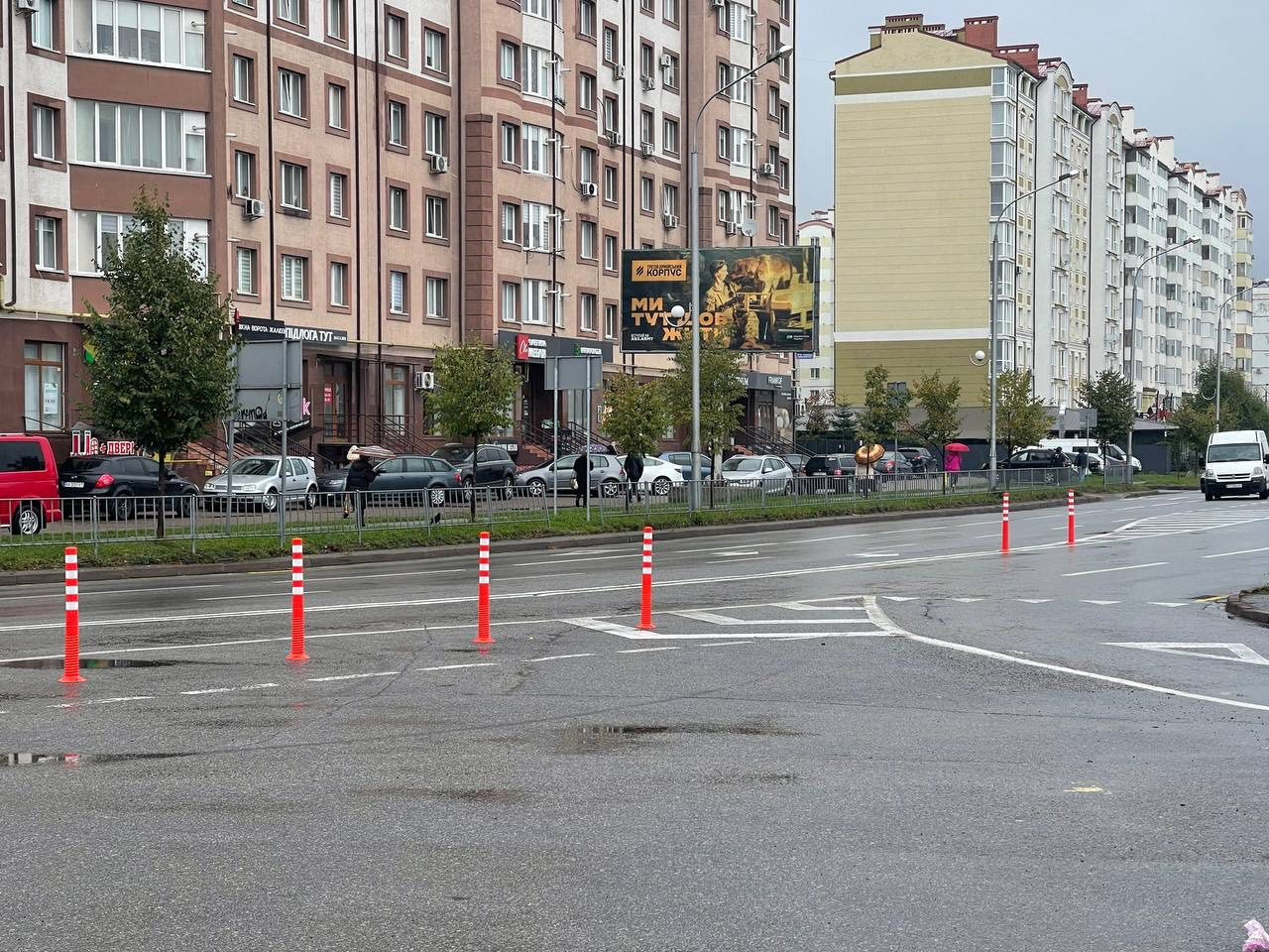 Як вказує посадовець, тепер водії не зможуть повертати ліворуч там, де заборонено, та перетинати подвійну лінію розмітки при заїзді до торгового центру. Делініатори також унеможливлюють розворот перед острівцем безпеки.