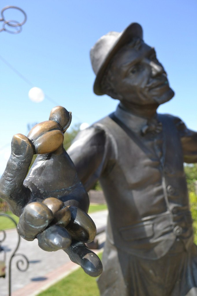 Тримає Лейба у своїй руці сливи, а драбиною, що є конструкцією пам’ятника, «повзе» хрущ. І сливи, і хрущ не прості, а – магічні.