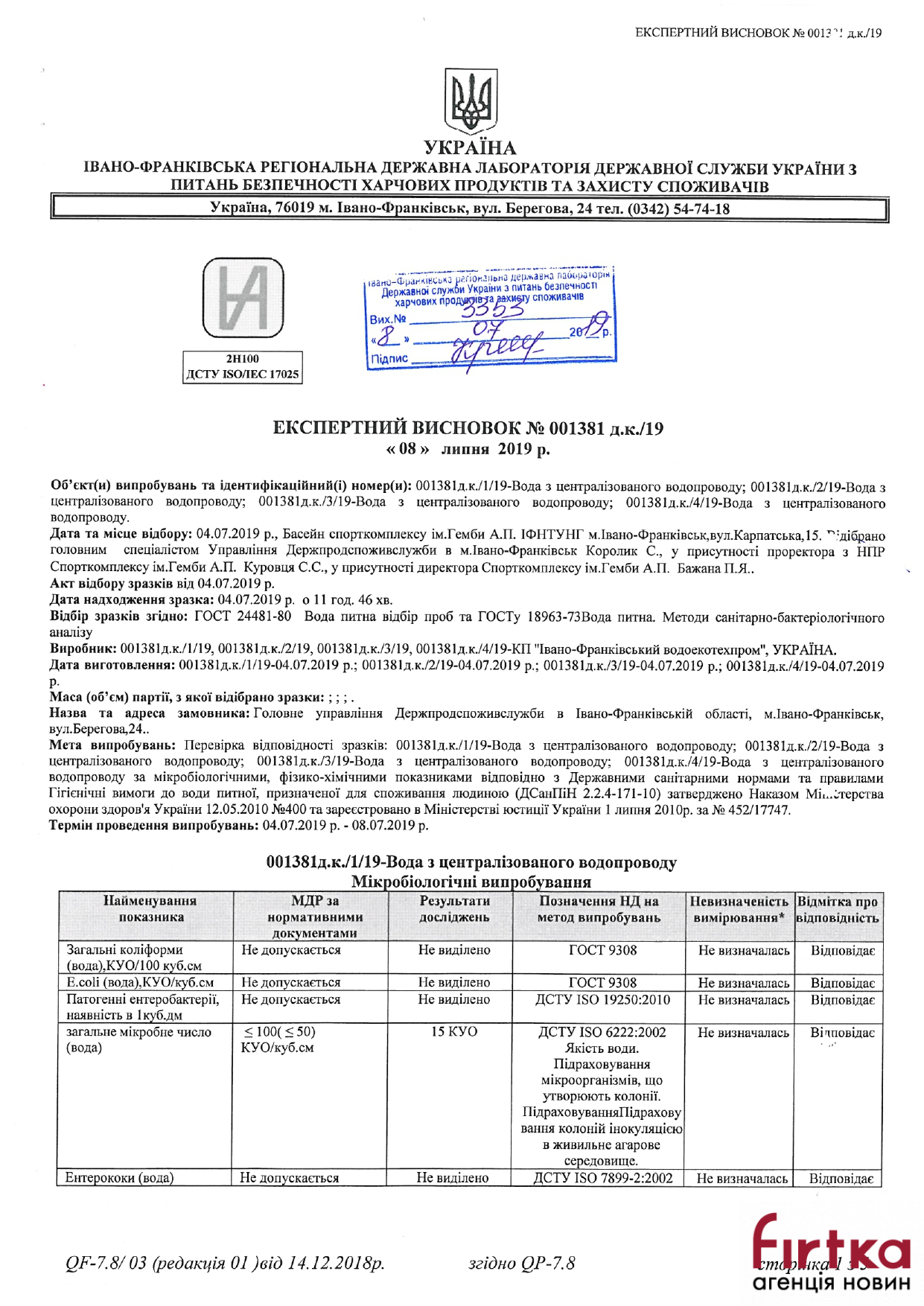 Зокрема, в університеті пояснили, що за результатами службового розслідування, відвідуючи  басейн ІФНТУНГ, можна бути впевненими: вода в ньому відповідає мікробіологічним, фізико-хімічним показникам.