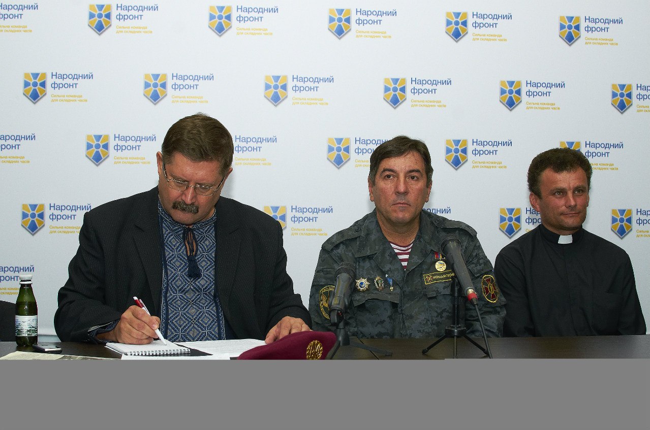 Знайомили журналістів з кандидатом його однодумці – депутат Коломийської міської ради, керівник окружного виборчого штабу «Народного фронту» Ігор Ільчишин; академік Академії наук, громадський діяч, письменник, президент історичного клубу «Холодний Яр» і одночасно керівник виборчого штабу кандидата в народні депутати Юрія Тимошенка Роман Коваль; священик-патріот, громадський діяч Михайло Арсенич, який нещодавно повернувся з полону; депутат міської ради, керівник міського виборчого штабу «Народного фронту» Любомир Глушков.