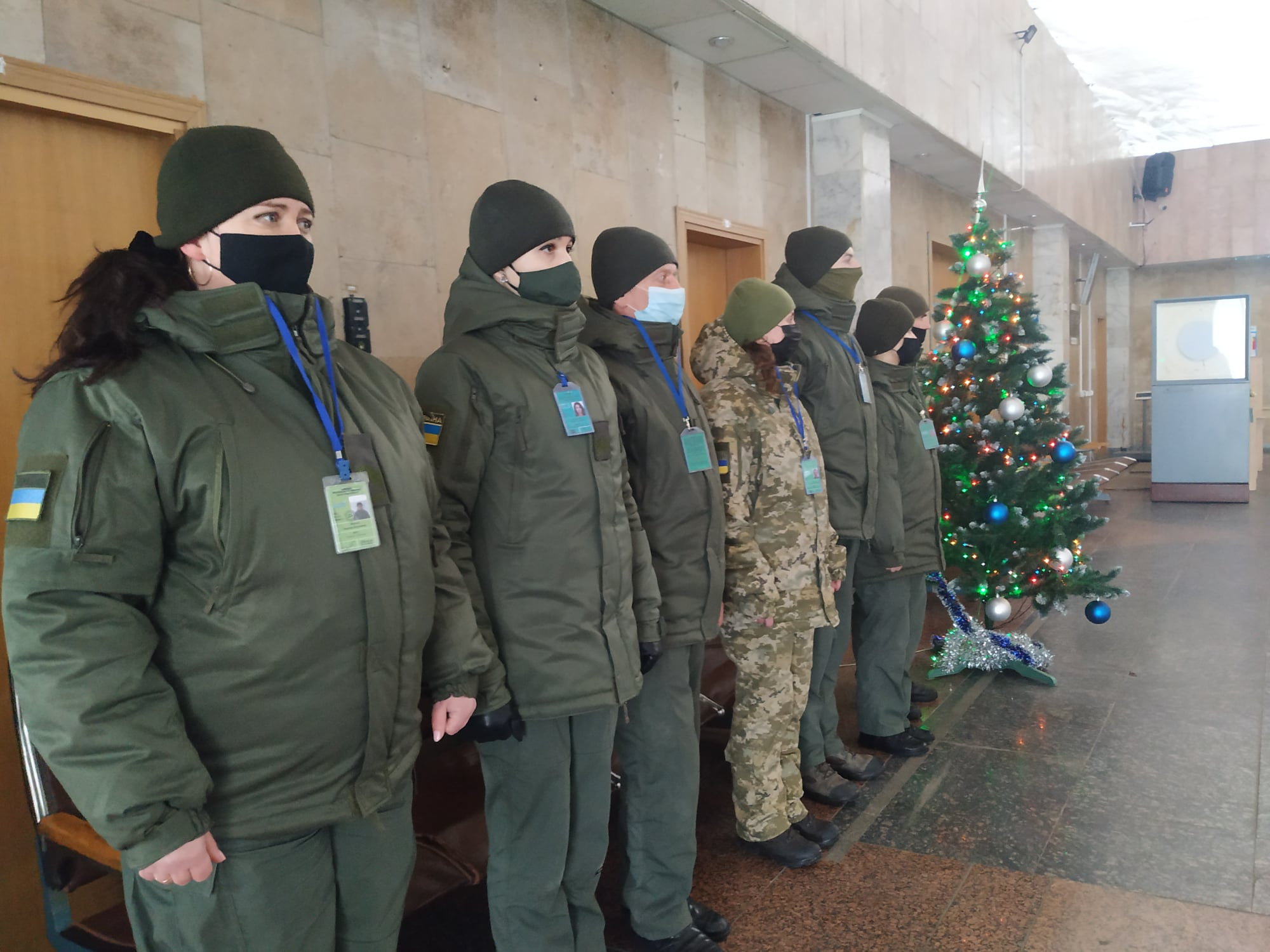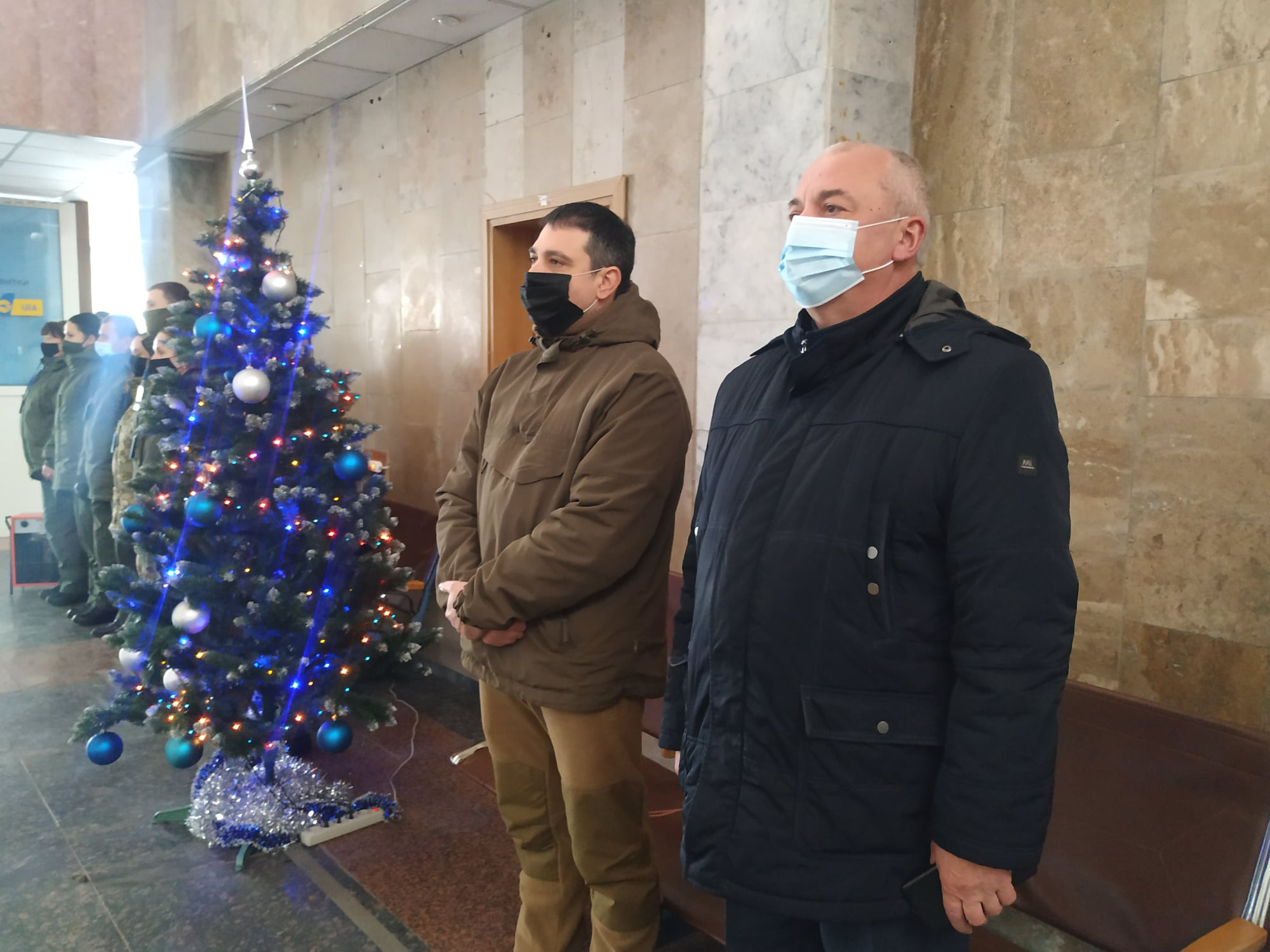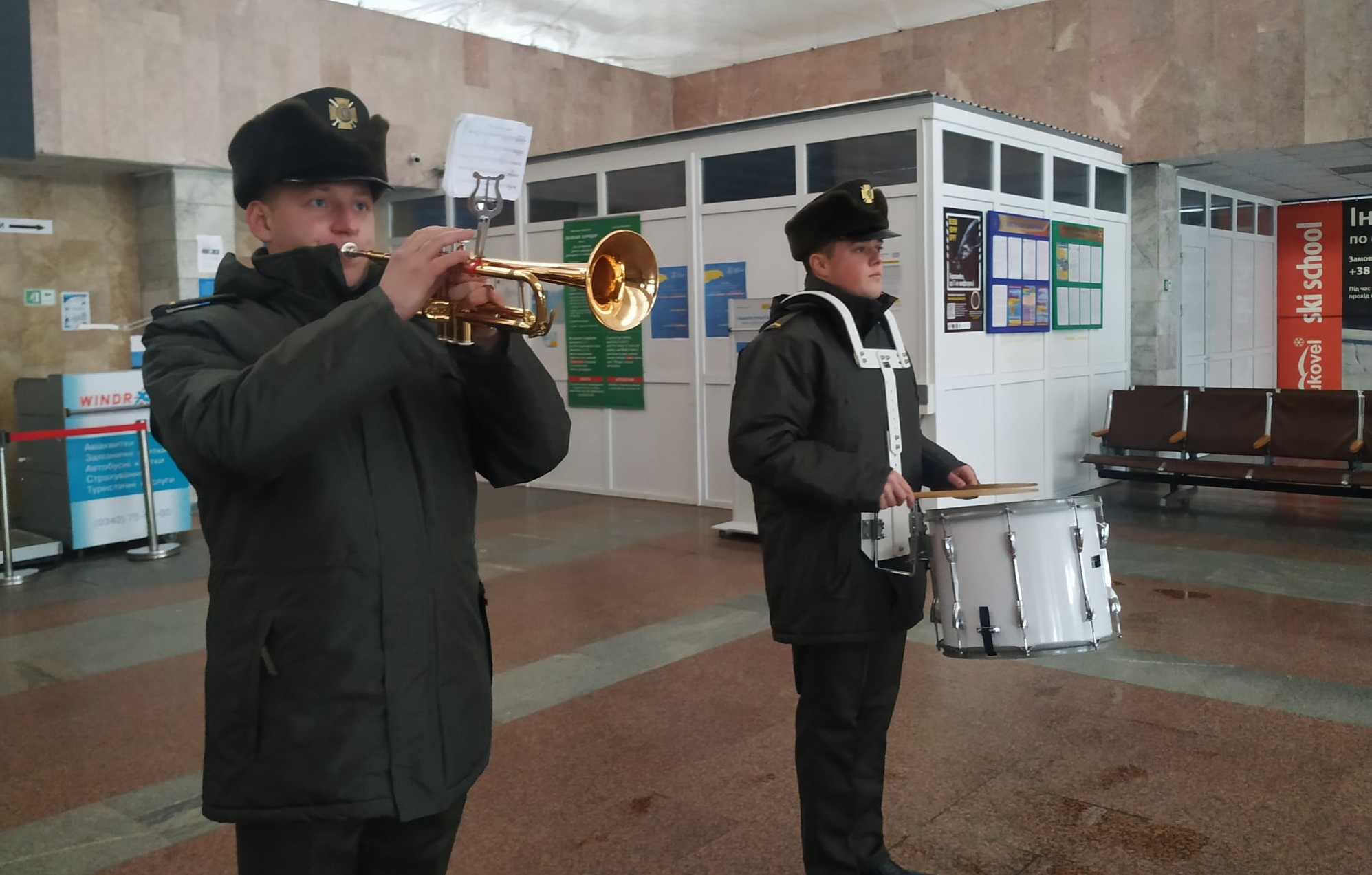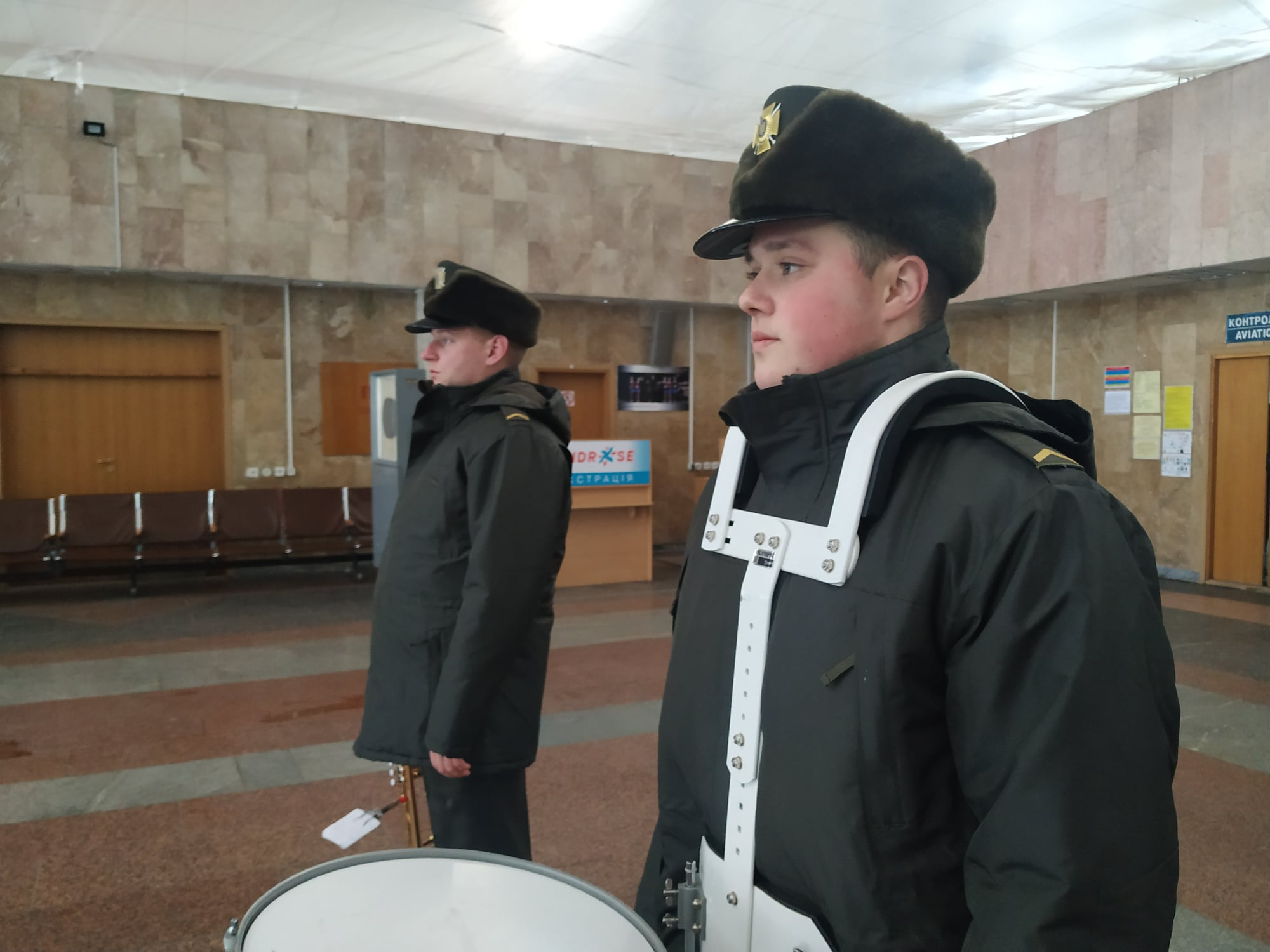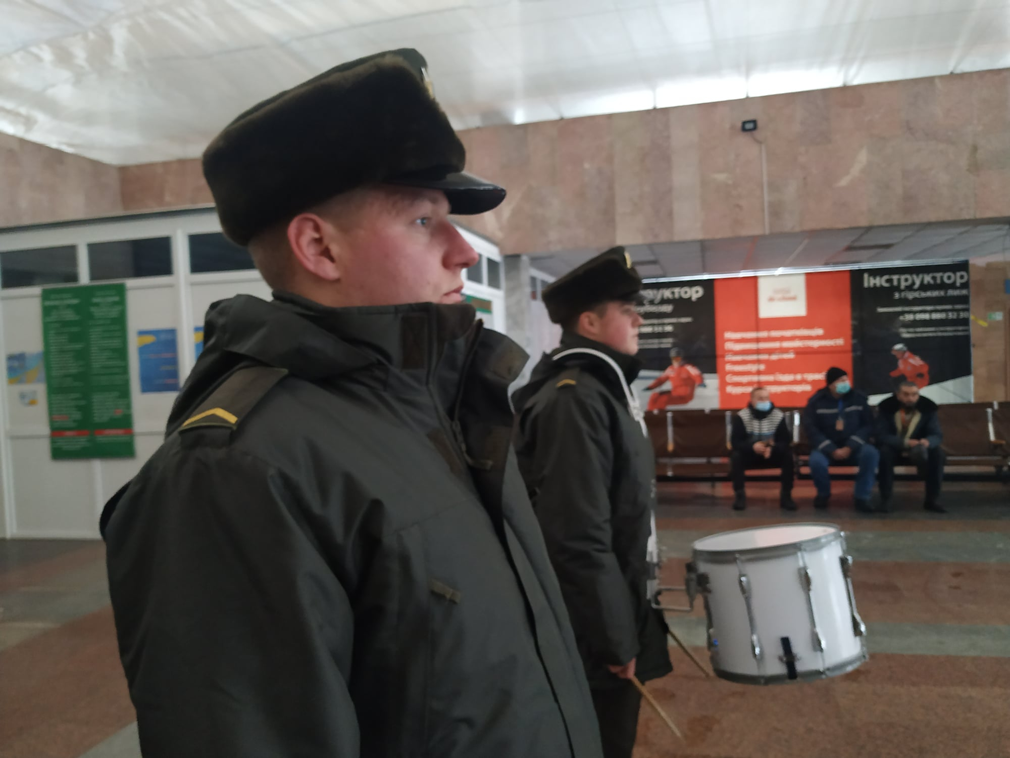 В аеропорту Івано-Франківська вшанували пам’ять кіборгів. Представники військового оркестру 44 окрема артилерійська бригада з Тернополя виконали музичну композицію "Шана".
