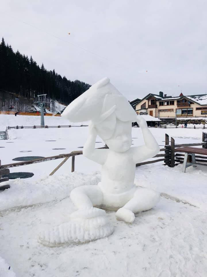 А от скульптори з Києва підійшли до роботи з гумором. Вони зобразили любов до катання на лижах.