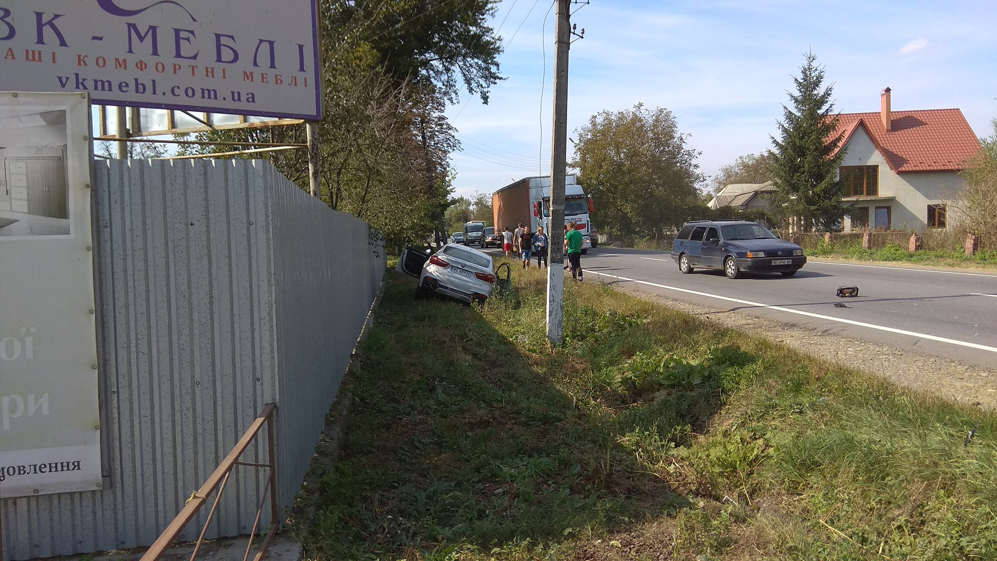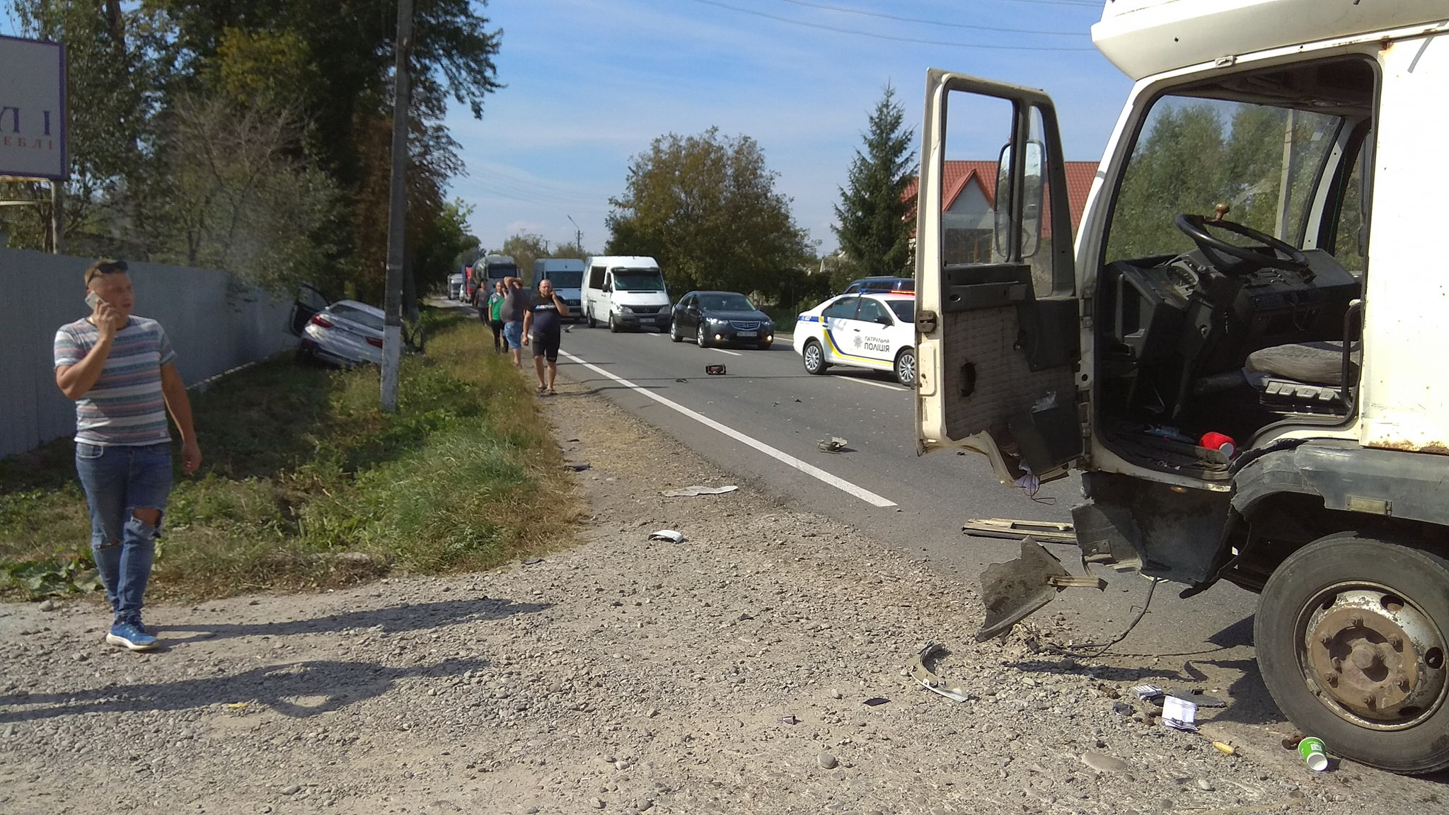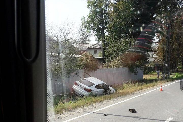 Внаслідок ДТП легковий автомобіль злетів з дороги. Рух ускладнено. На місці працює поліція.