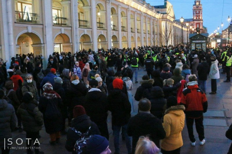 "Так, у Москві силовики перекрили на вхід Пушкінську площу, повідомляє РИА Новости. У Петербурзі люди виходять із пікетами до «Гостинного двору», на місце прибув ОМОН.
