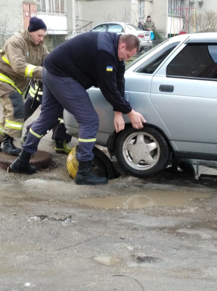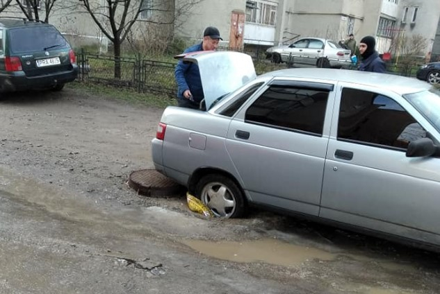 В Івано-Франківську автомобіль провалився у відкритий люк (ФОТО)