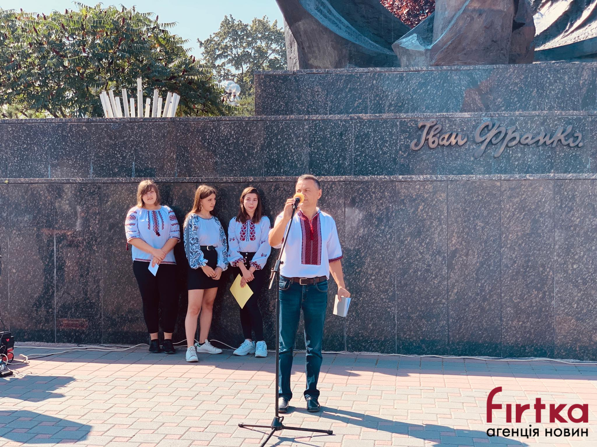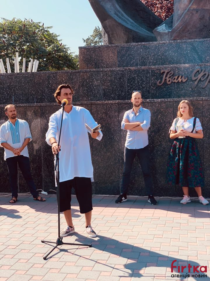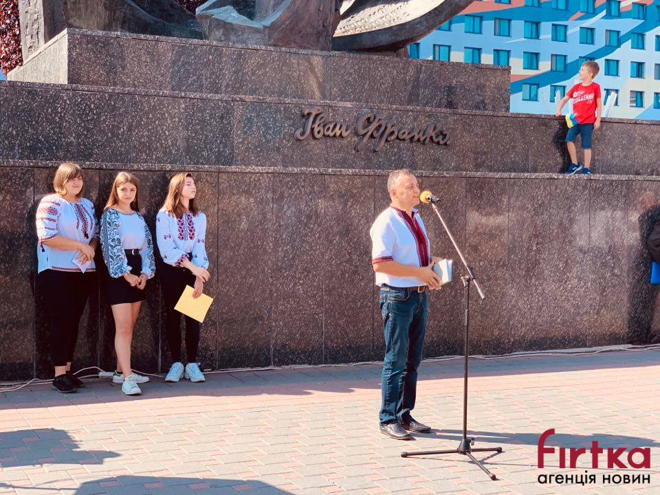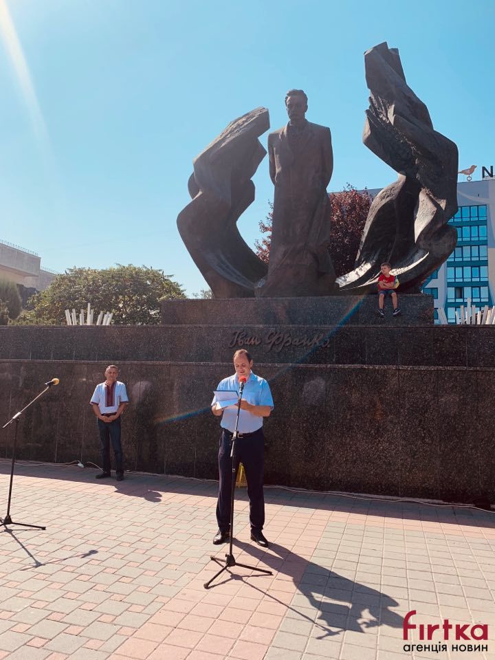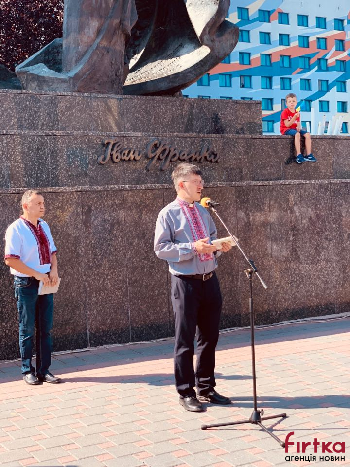 На площі Івана Франка перед облмуздрамтеатром зібралось кілька десятків містян, представники влади, інтелігенція, щоб у цей день згадати творчість Каменяра.