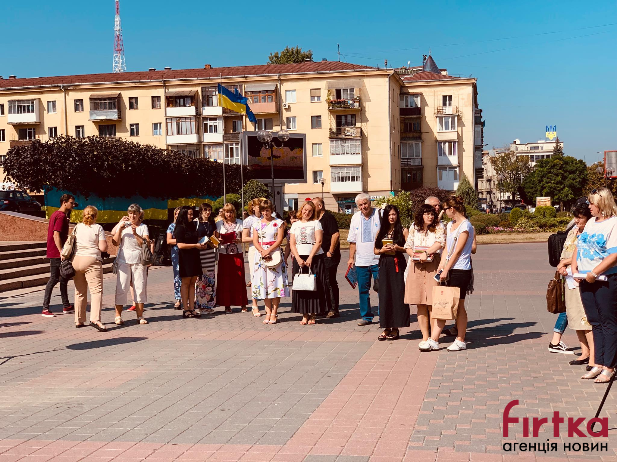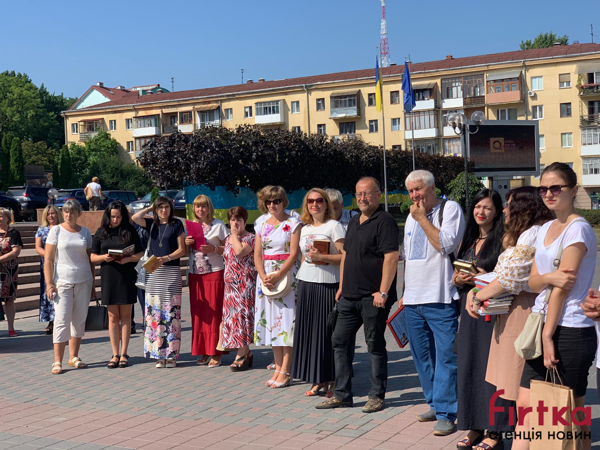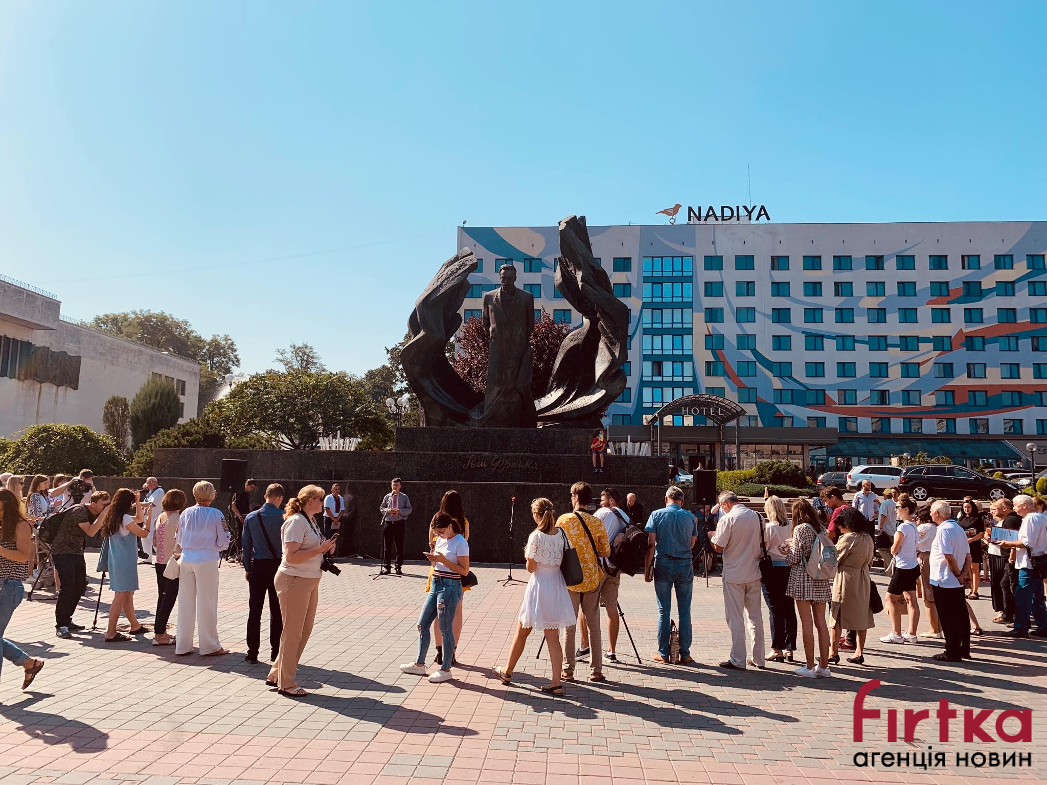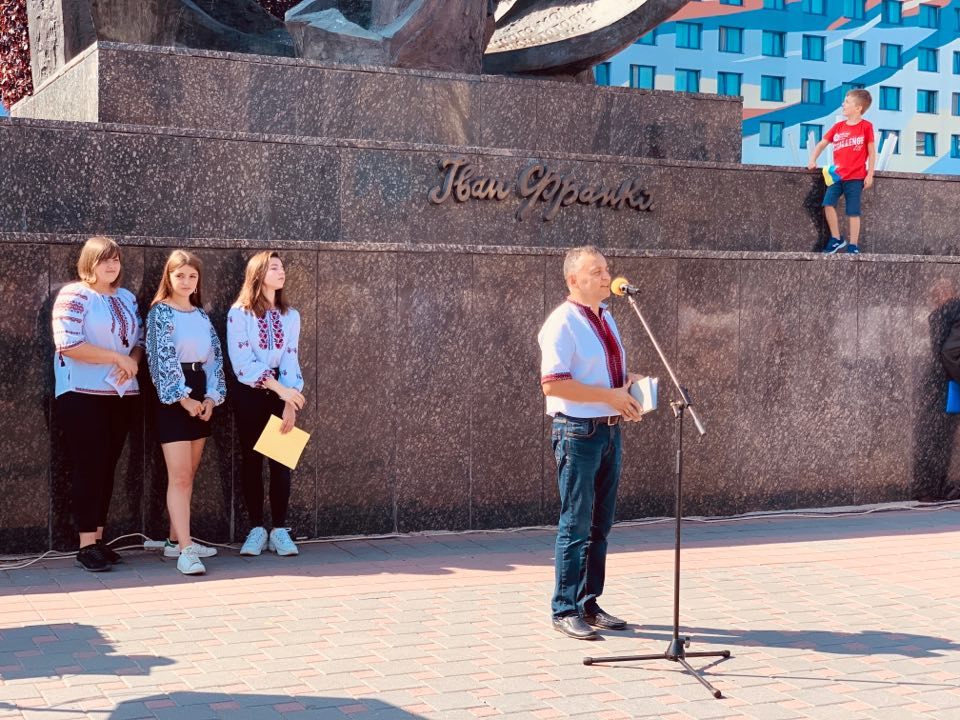 На площі Івана Франка перед облмуздрамтеатром зібралось кілька десятків містян, представники влади, інтелігенція, щоб у цей день згадати творчість Каменяра.