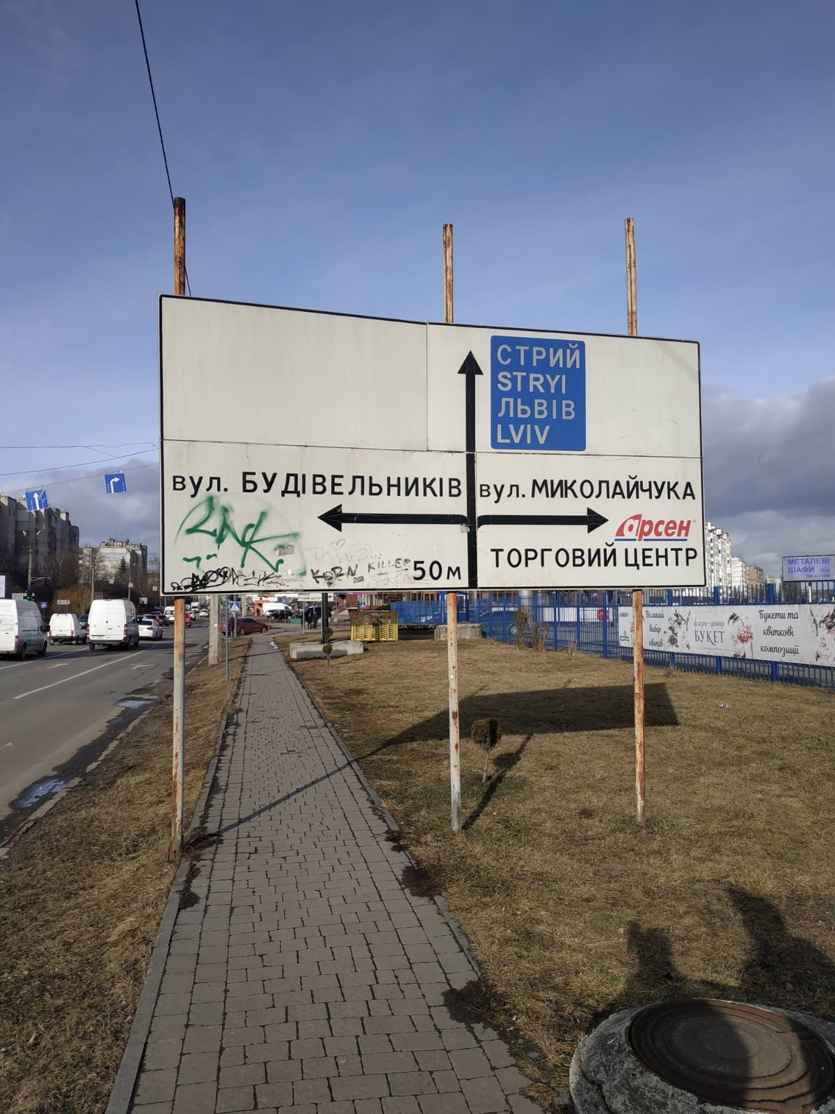 3. вул. Івасюка, 17 - аварійний знак напрямку руху;
