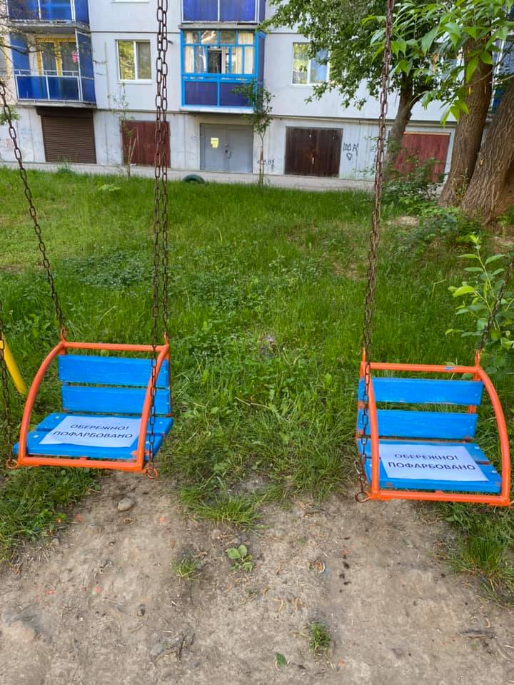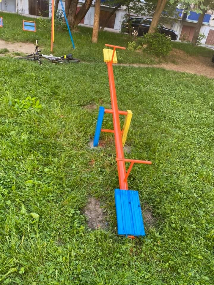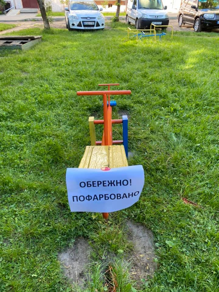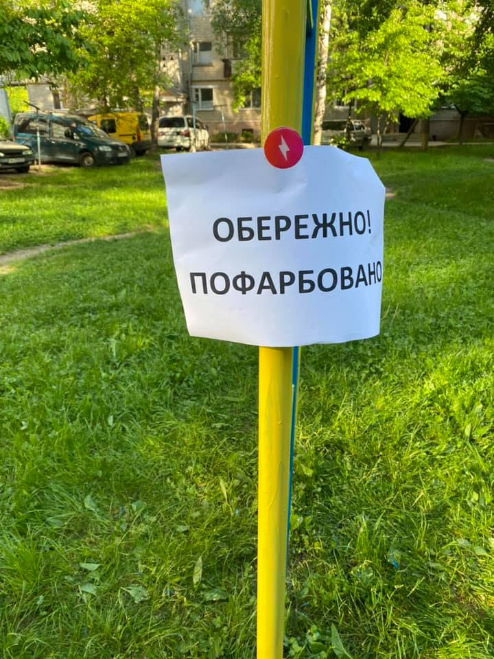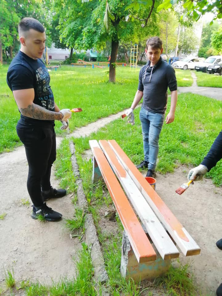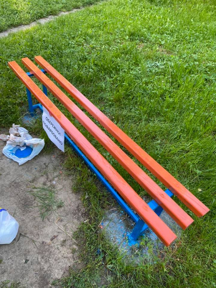 Впродовж трьох годин команда відновила покриття на вуличних меблях, турнірах та дитячих гойдалках, розфарбувавши їх в яскраві кольори.