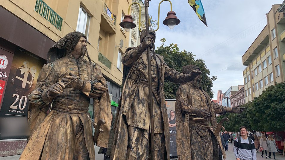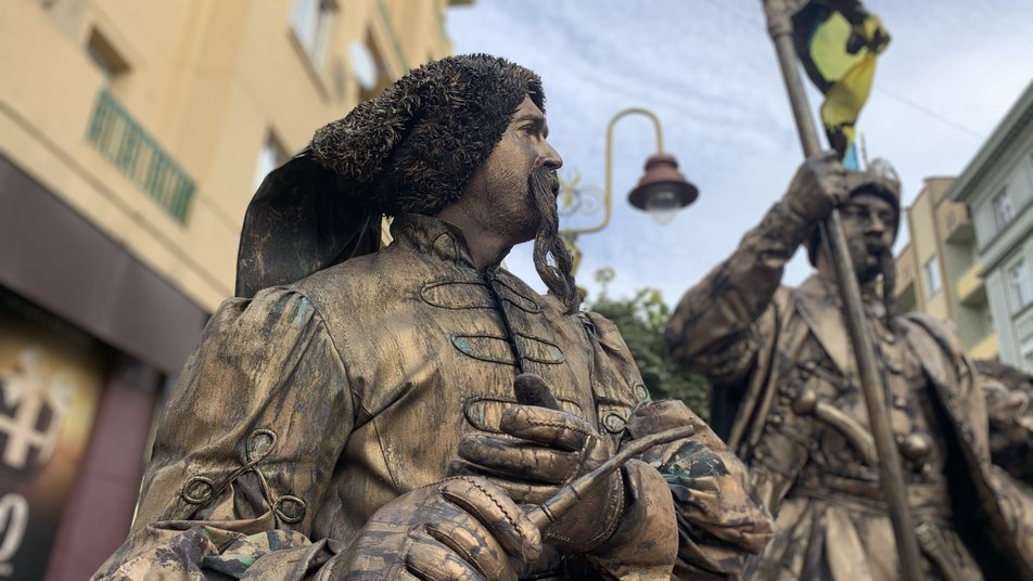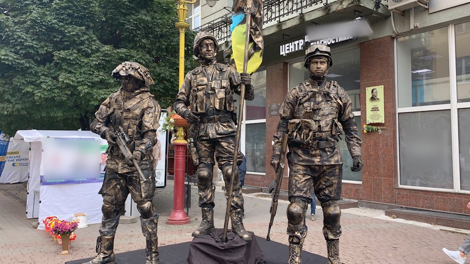 Також у межах святкування на вулиці Незалежності стоять живі скульптури захисників України з різних епох.