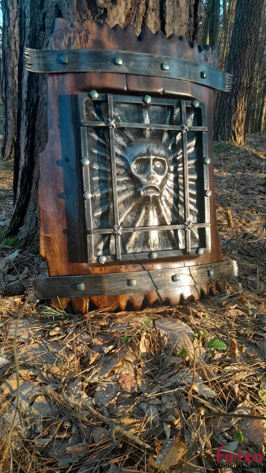 «Це кований щит, який зображає несвідоме воїна, що бореться на смерть з потойбічною пітьмою. Вона для мене дуже дорога, бо є особистим визнанням бойового офіцера, який пройшов Азовсталь і Оленівку…