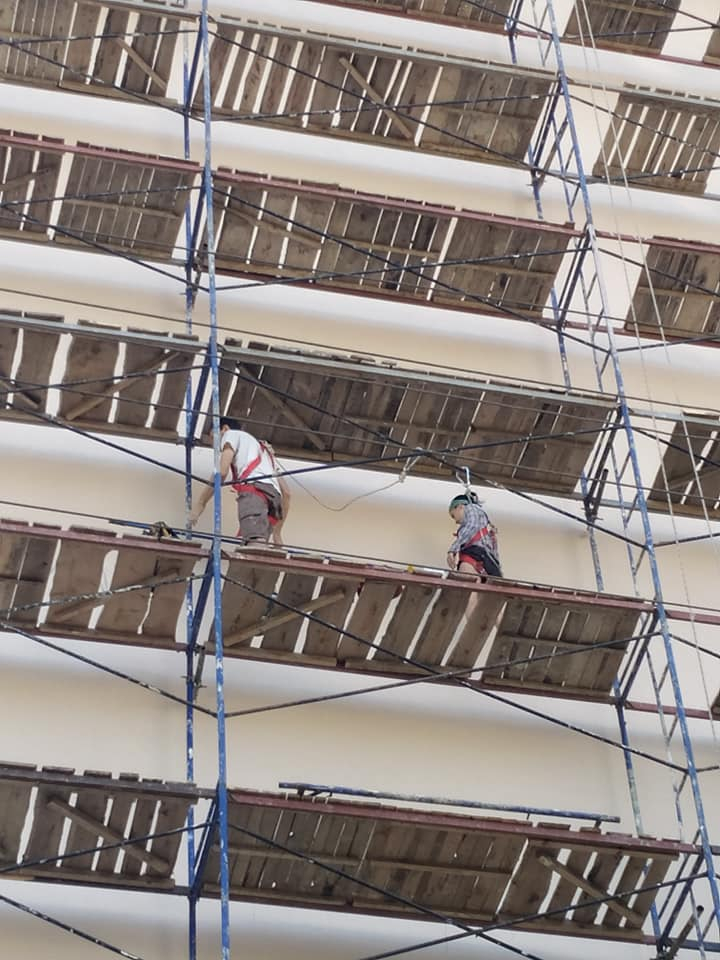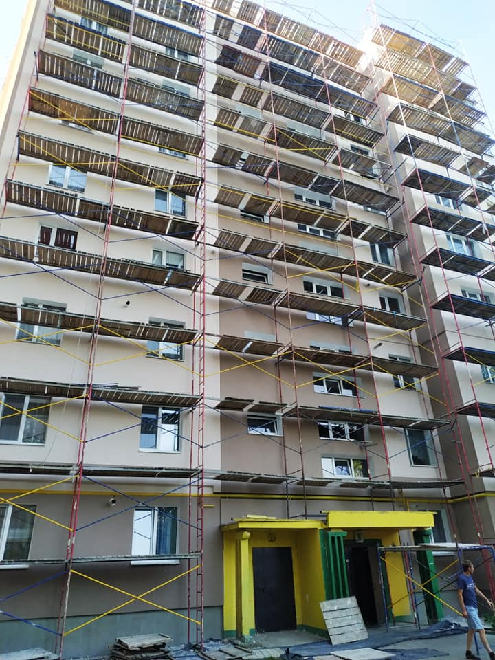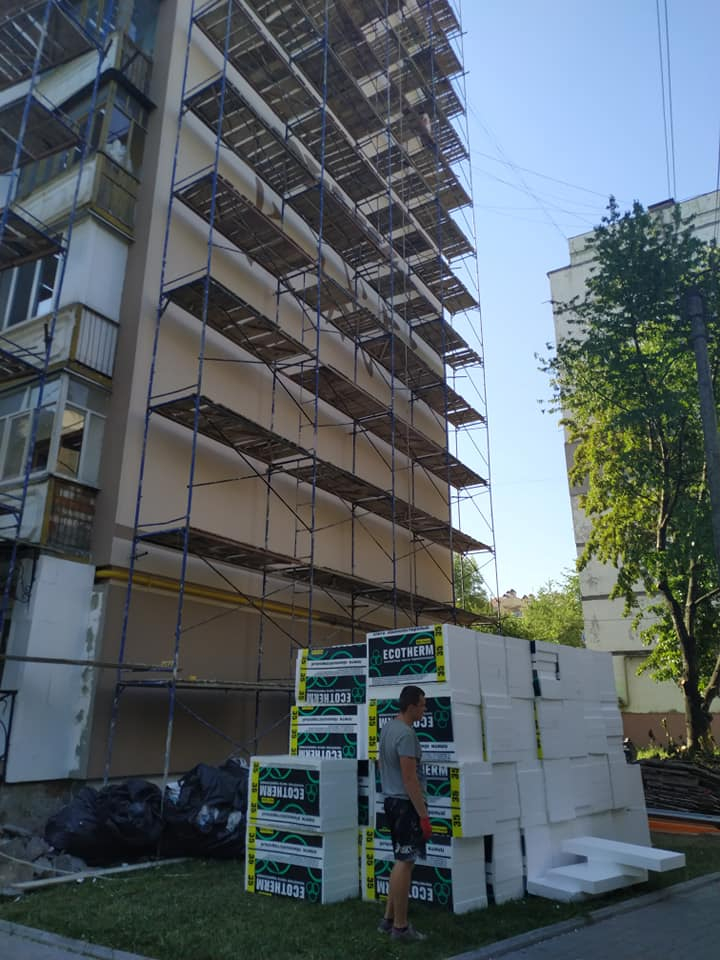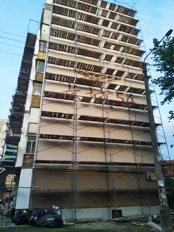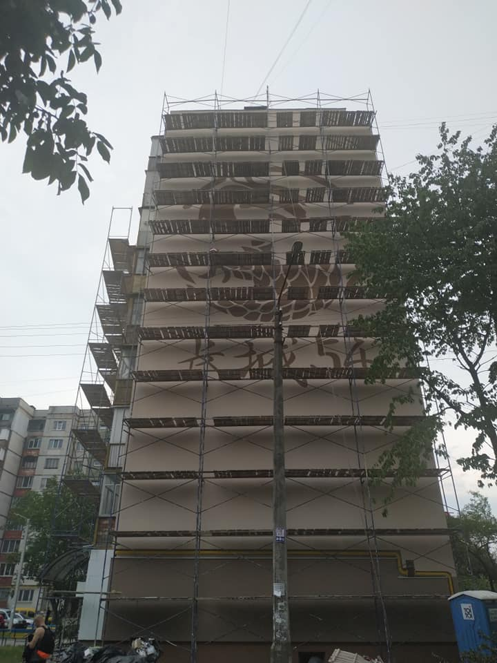 Спочатку тут утеплили фасад та торець будинку. Малює новий шедевр місцевий художник Юрій Пітчук.