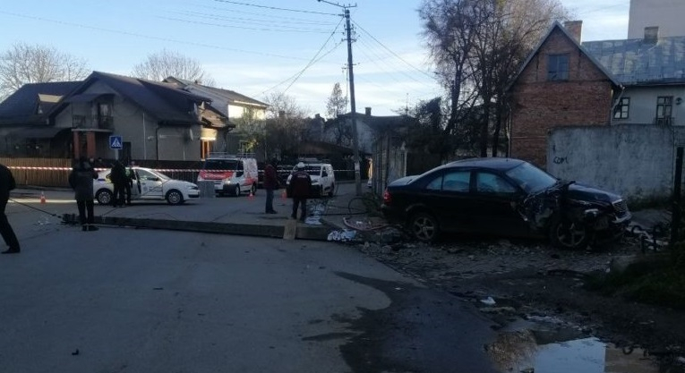 Водій Мерседеса пошкодив бетонний паркан, а також влетів в електроопору.