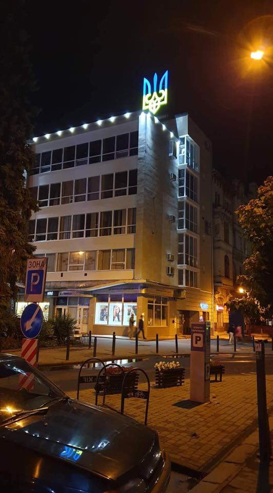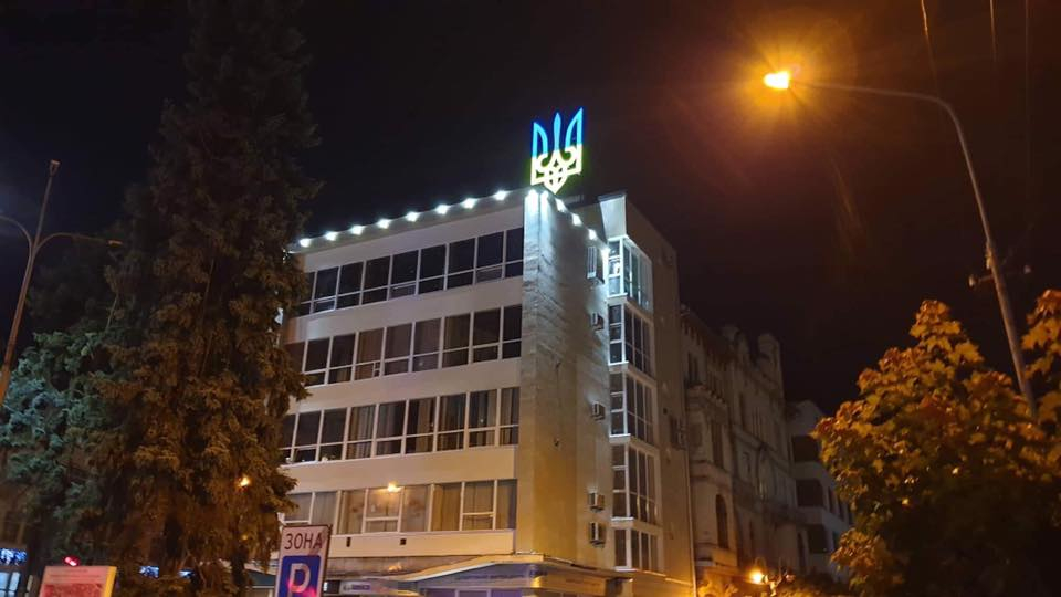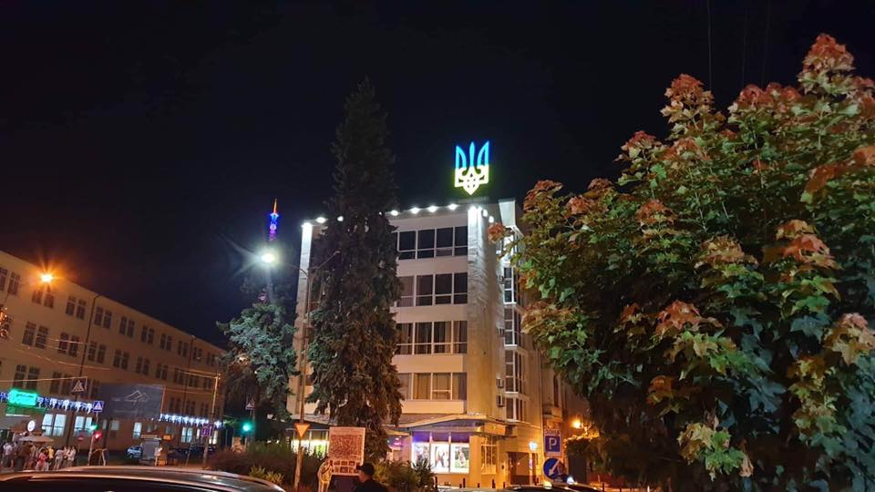 Нагадаємо, днями працівники КП “Івано-Франківськміськсвітло” на замовлення Департаменту житлової, комунальної політики та благоустрою Івано-Франківської міської ради провели капітальний ремонт та встановили світлодіодну підсвітку національного герба України, що знаходиться на даху будівлі за адресою по вул. Незалежності, 34.