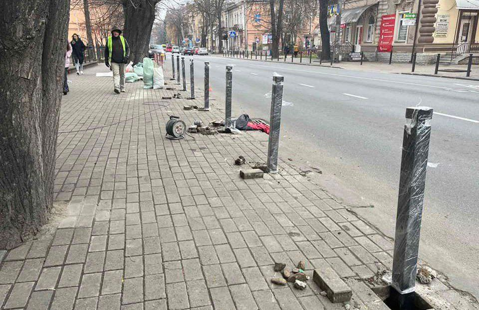 В Івано-Франківську на одній із вулиць встановили антипаркувальні стовпчики (ФОТО)