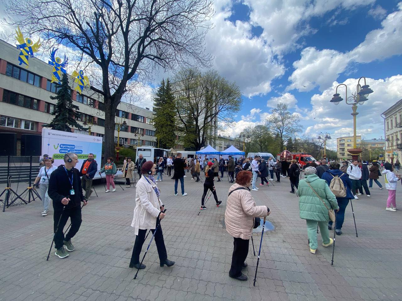Зареєстровані учасники отримали спорядження для скандинавської ходьби та в супроводі аудіогіда протягом 20 хвилин слухали музику і цікаву інформацію про здоров’я.