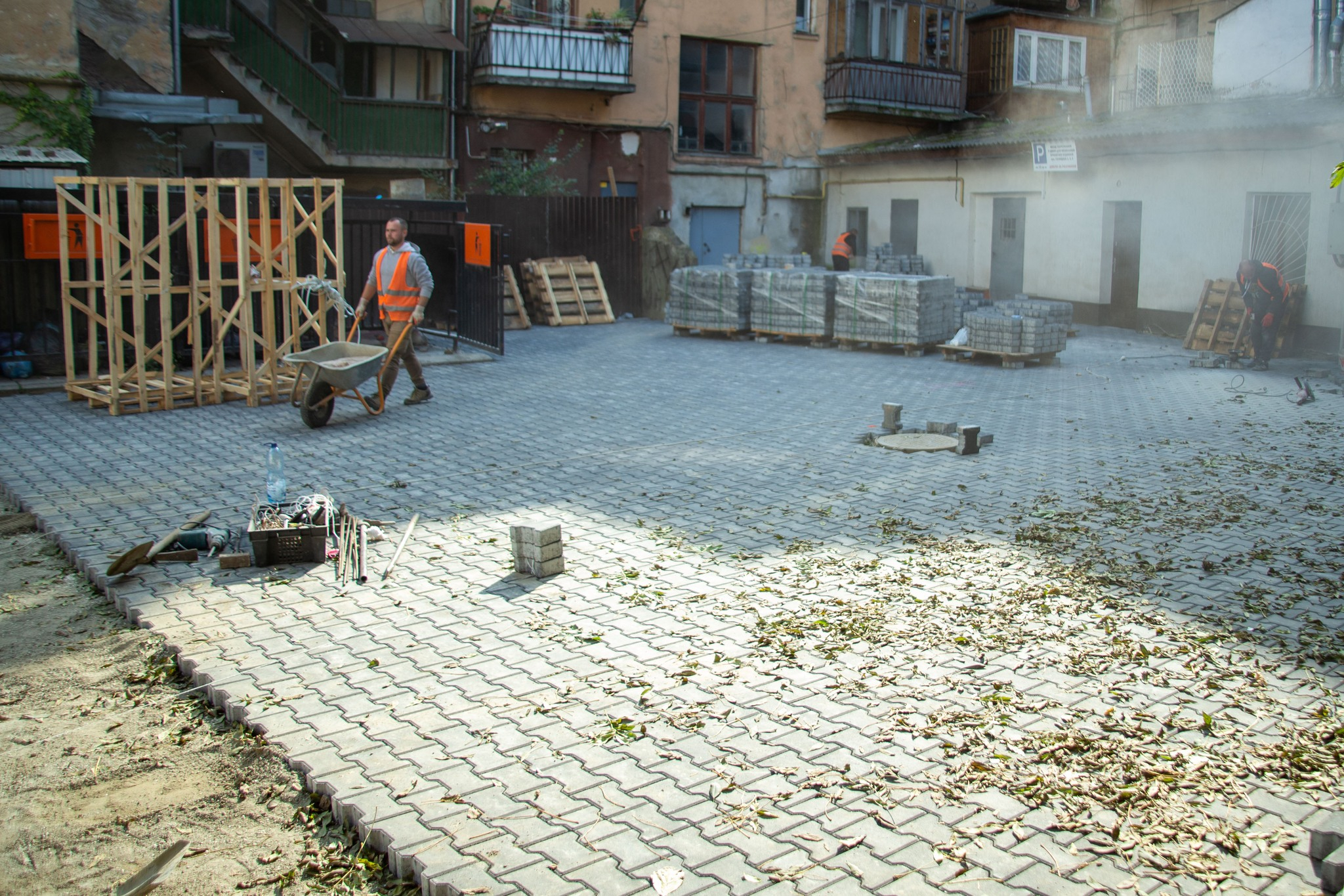 В Івано-Франківську триває ремонт двору на вулиці Бельведерська 4,6,8, що позаду фортифікаційної споруди «Бастіон».