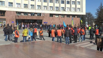 Працівники Укрзалізниці вийшли на протест під стіни Івано-Франківської обласної адміністрації. Вони вимагають відновлення роботи приміських потягів.