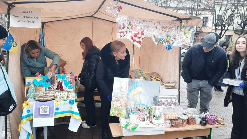 На площі Ринок в Івано-Франківську міська рада учнівського самоврядування організувала благодійний ярмарок. Під час заходу франківські ліцеїсти пропонували відвідувачам виготовити різдвяну іграшку, скуштувати солодощі, піти на екскурсію Франківським драмтеатром та придбати розмальовані тубуси з фронту.