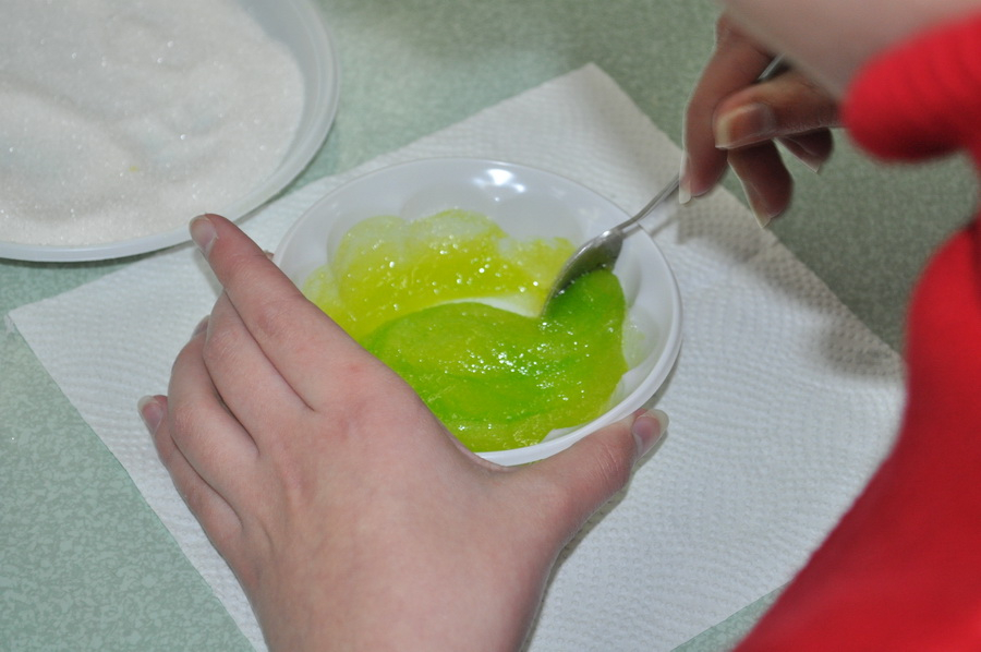 Також простим у виготовленні є скраб, його можна робити навіть у домашніх умовах. Для цього достатньо звичайного цукру, мильної основи, харчового барвника та ароматизатора.