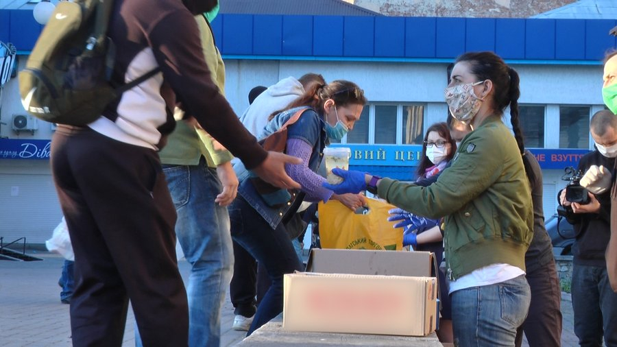 На майдані Шептицького сьогодні зібралося близько 70-ти людей, розповідає член Спільноти святого Егідія Іван Харук. До карантину – приходило 45-50. Щоб черга рухалася рівномірно й люди не порушували правил карантину, волонтери на площі намалювали квадрати, відстань між якими - півтора метра. Ті, хто приходять на вечерю, повинні стати в квадрат й підходити по їжу по одному. Коли весь ряд отримує пакунок, підсувається інший ряд.