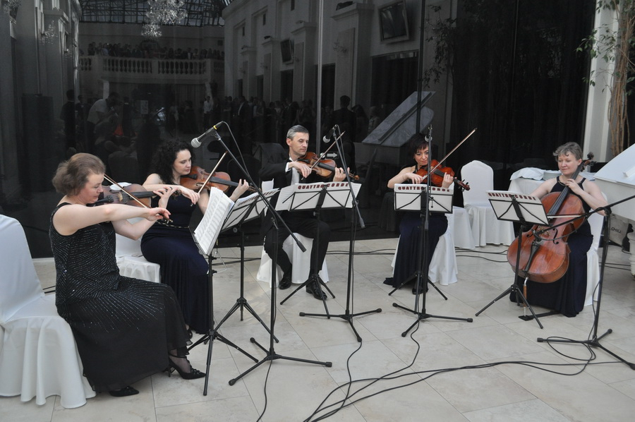 Вишуканий і просторий зал створив особливо урочисту атмосферу, яку доповнила чудова музика у виконанні струнного ансамблю «Quattro Corde» та пісенні дарунки у виконанні студентів і викладачів університету.